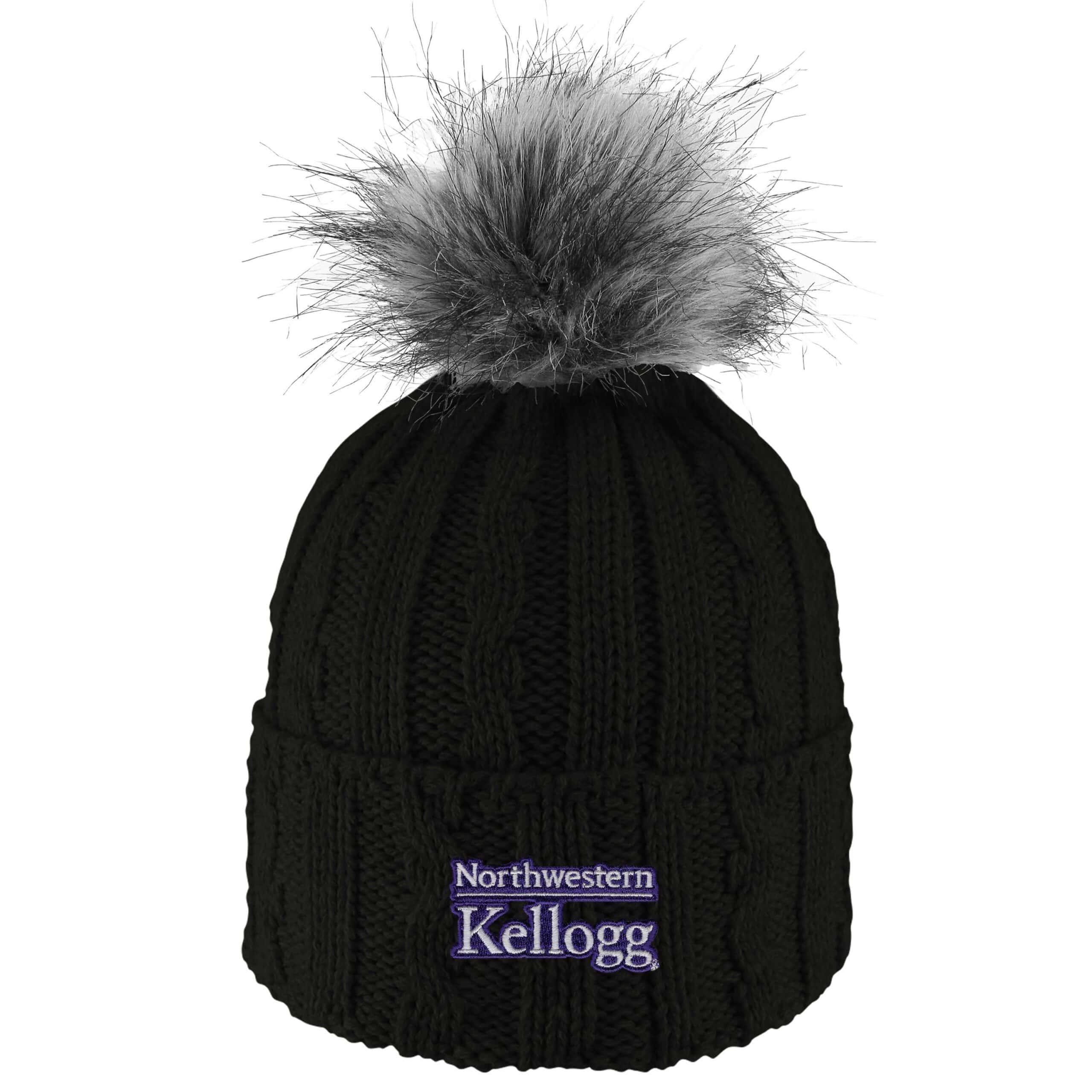 Northwestern I Kellogg Alps Black Knit Cuff Hat with Flux Fur Pom