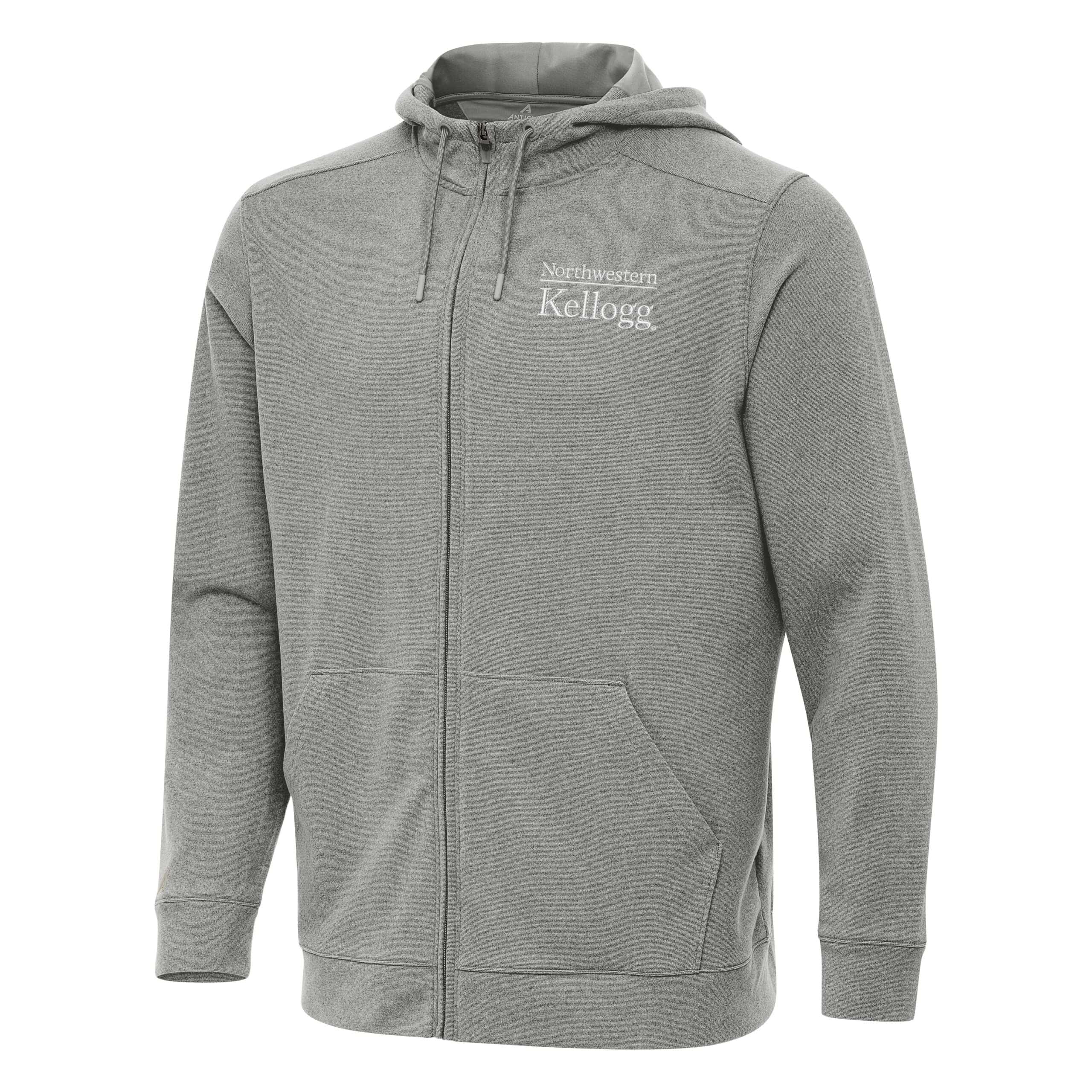 Northwestern I Kellogg Antigua Men’s Effortless Supersoft Black Heather FZ Hood