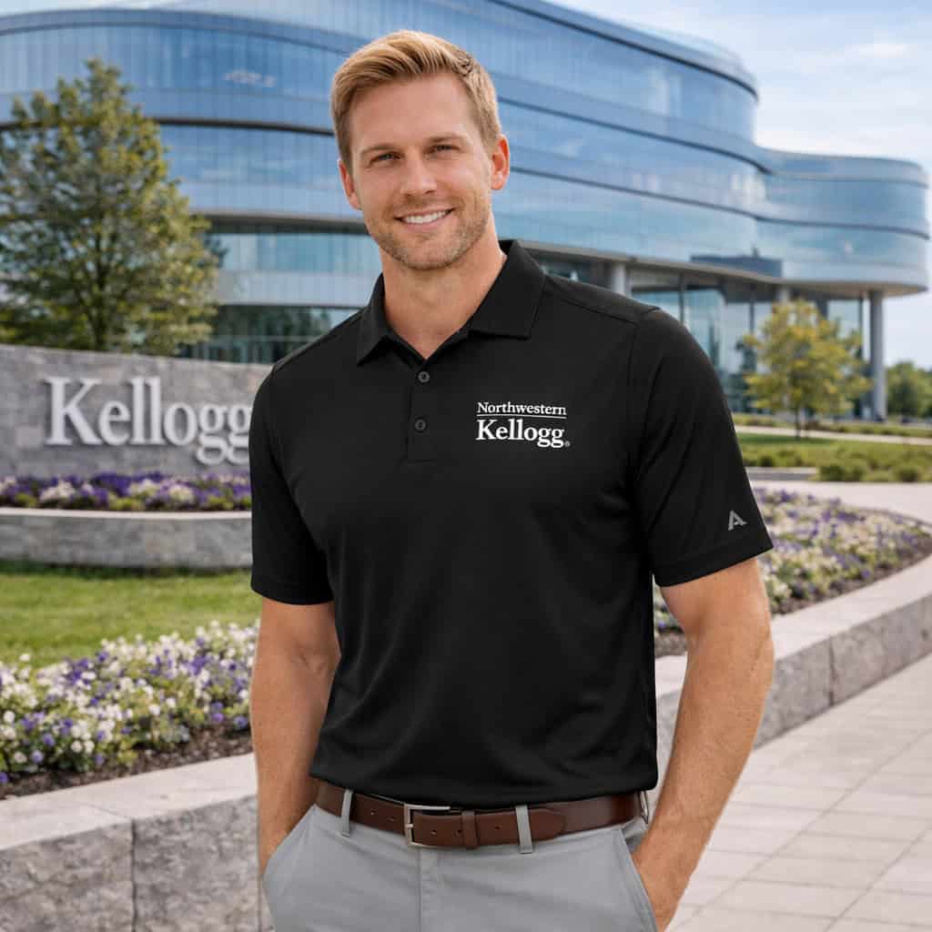 Northwestern I Kellogg Antigua Men’s Tribute Black Polo Shirt