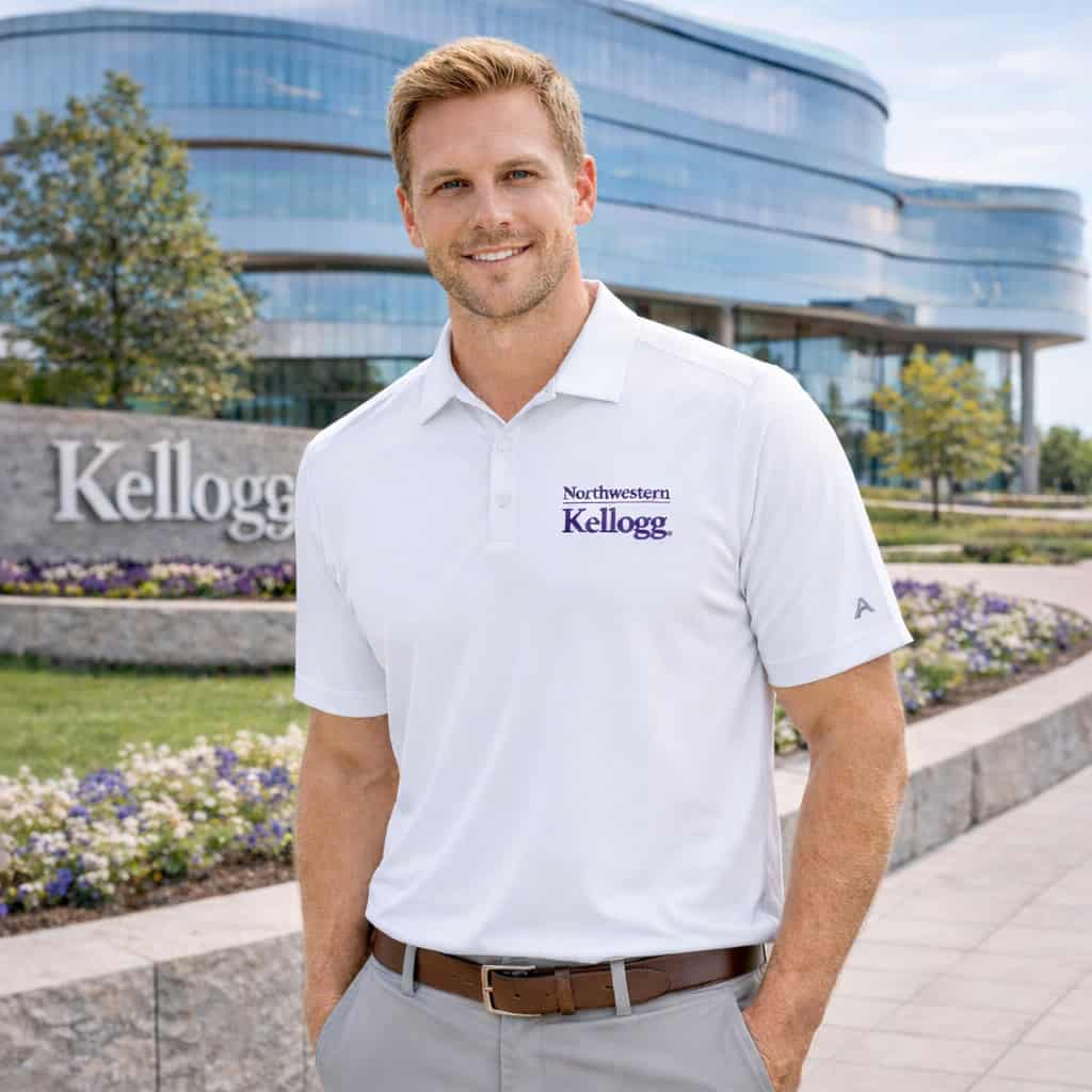 Northwestern I Kellogg Antigua Men’s Tribute White Polo Shirt