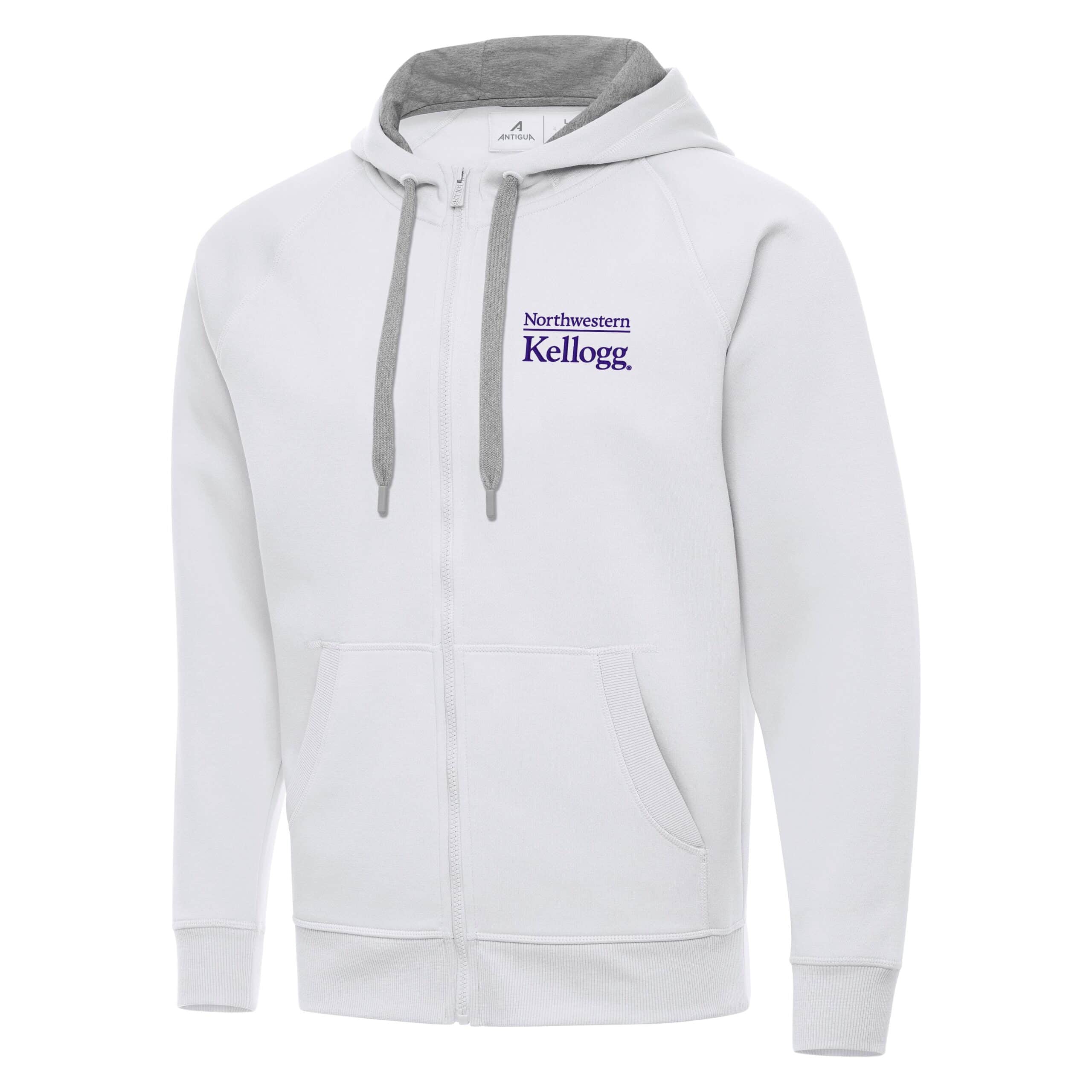 Northwestern I Kellogg Antigua Men’s Victory White FZ Hood