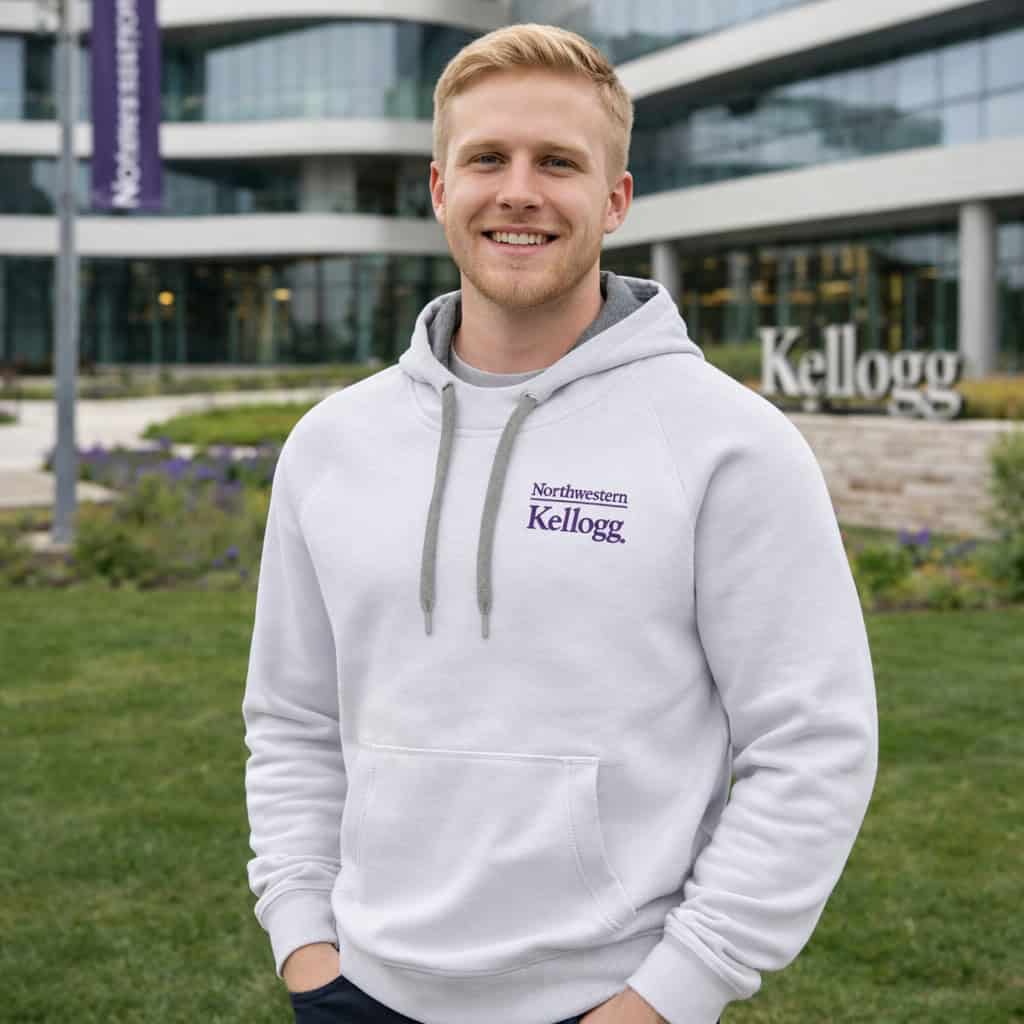 Northwestern I Kellogg Antigua Men’s Victory White Pullover Hood