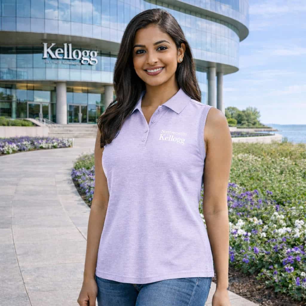 Northwestern I Kellogg Antigua Women’s Recap Pastel Lilac Heather Sleeveless Polo