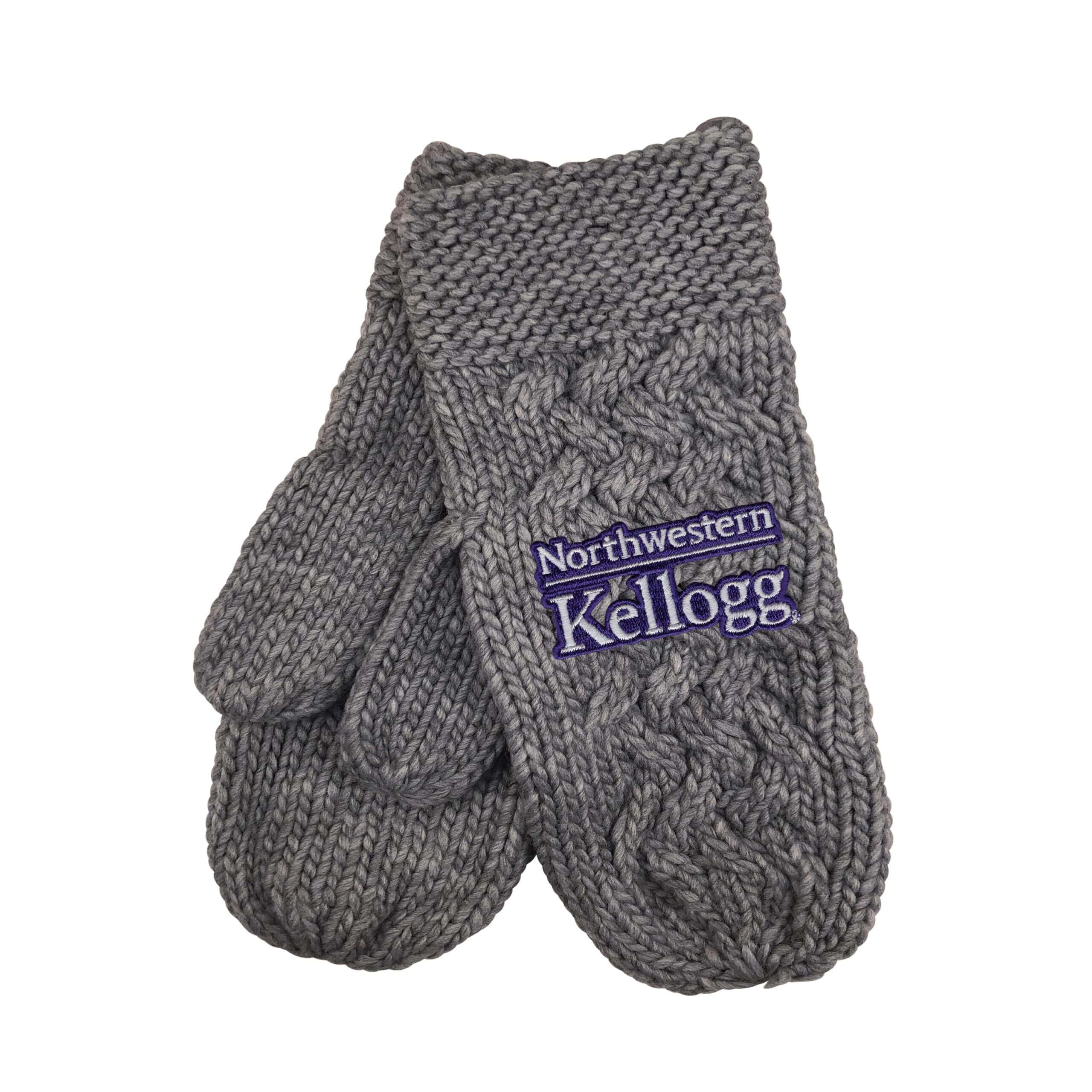 Northwestern I Kellogg Arya Light Grey Cable Knit Mittens