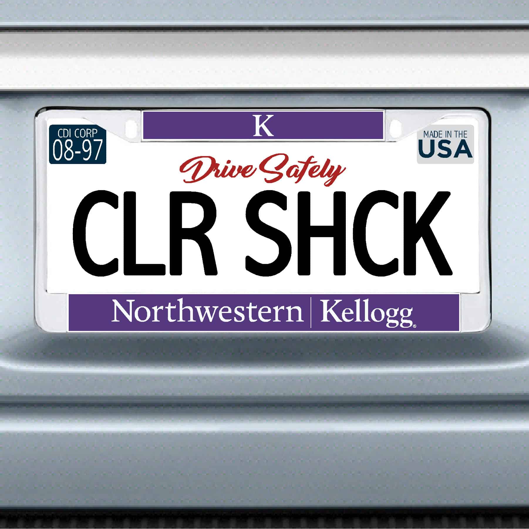 Northwestern I Kellogg Chrome License Plate Frame with Purple Laser Cut Insert