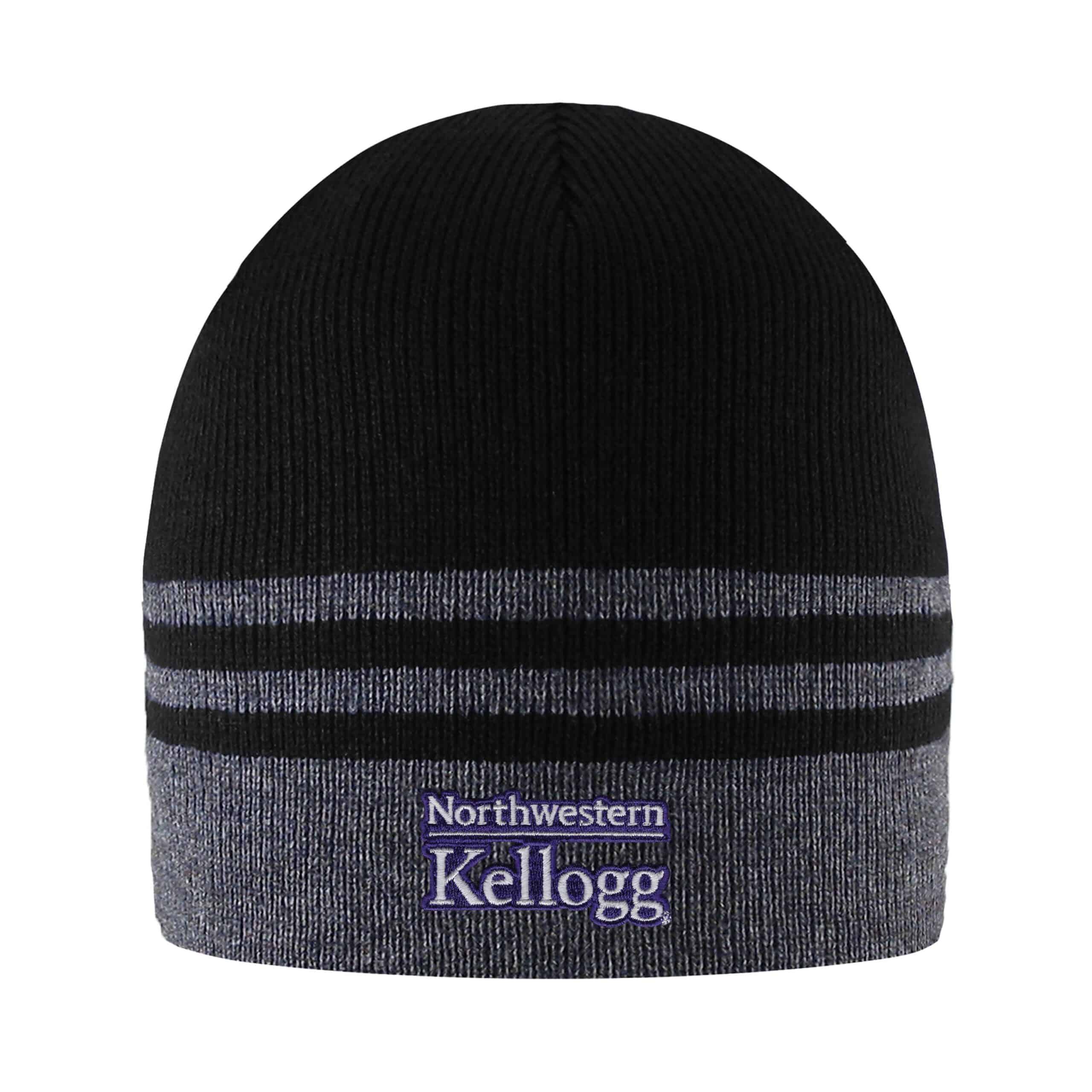 Northwestern I Kellogg Crew Charblack Knit Beanie Hat with Varsity Stripes