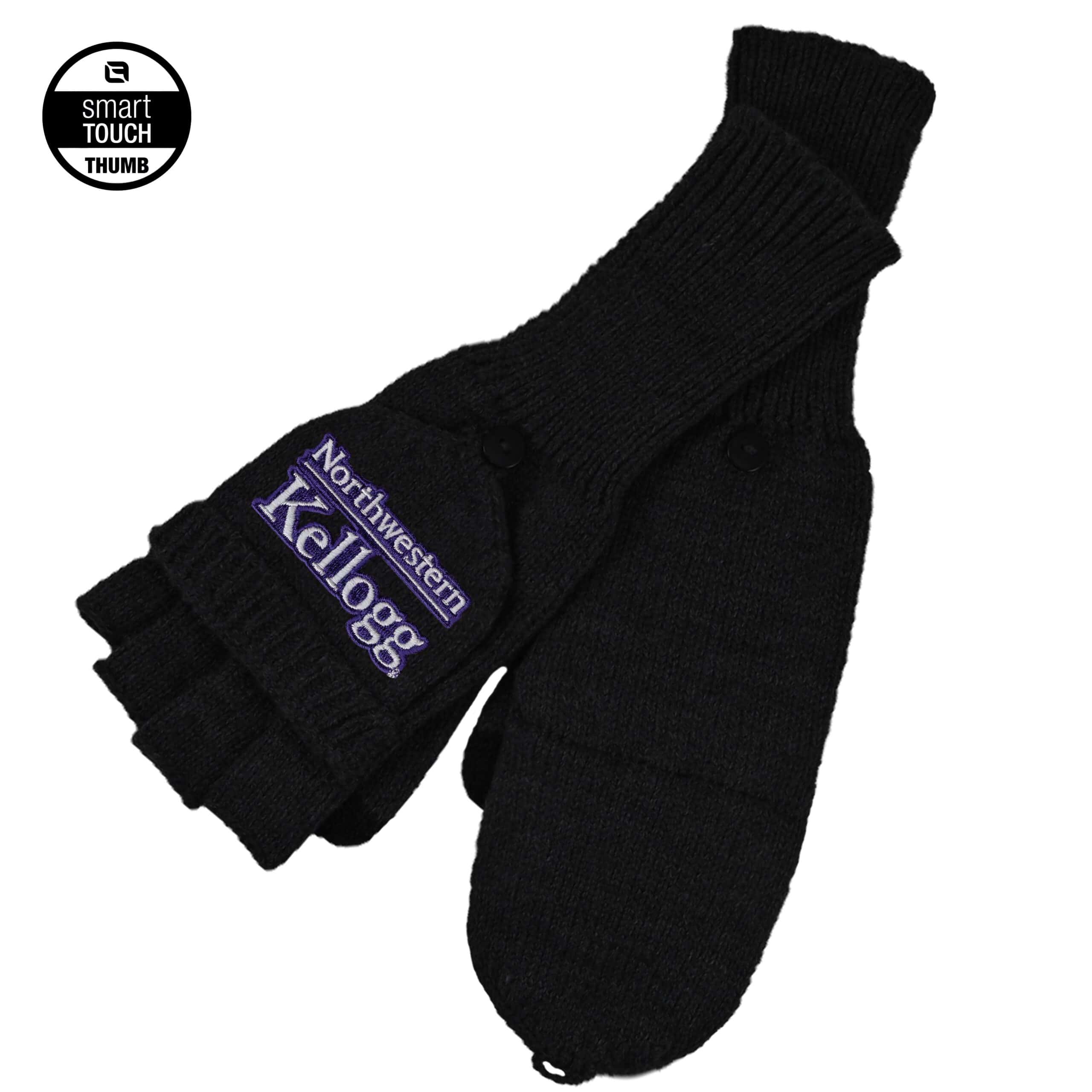 Northwestern I Kellogg Escanaba Black Knit Mittens with Flip-Top and Smart Touch Thumb