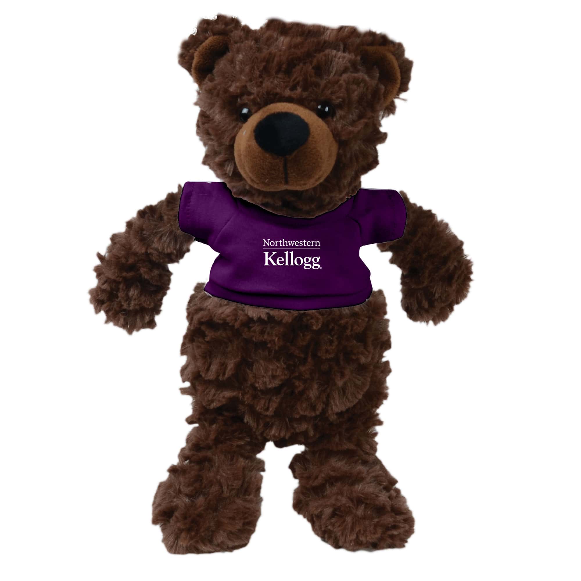 Northwestern I Kellogg Fuzzy Bunch Bear Wearing Purple “Northwestern I Kellogg” Tee Shirt