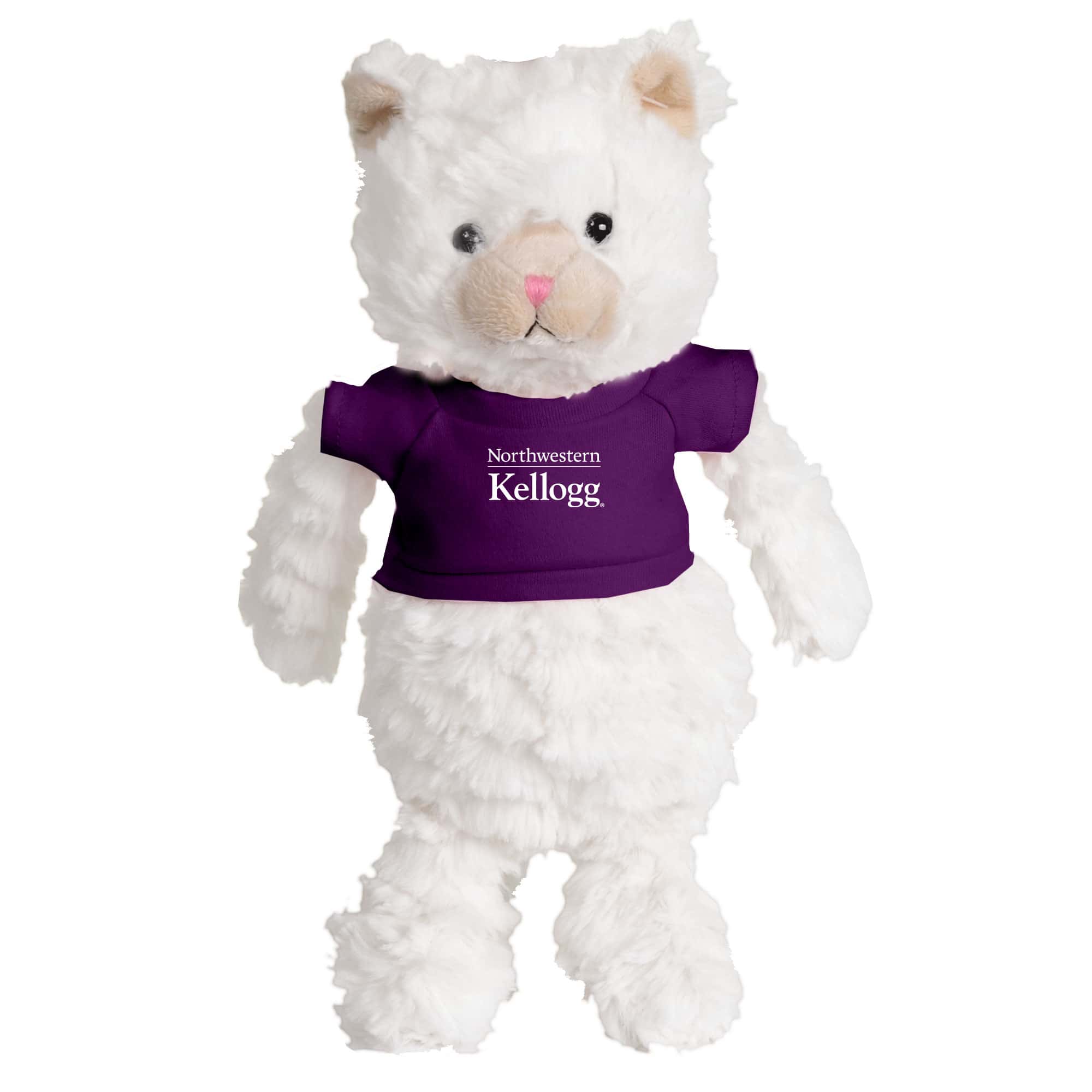 Northwestern I Kellogg Fuzzy Bunch Cat Wearing Purple “Northwestern I Kellogg” Tee Shirt