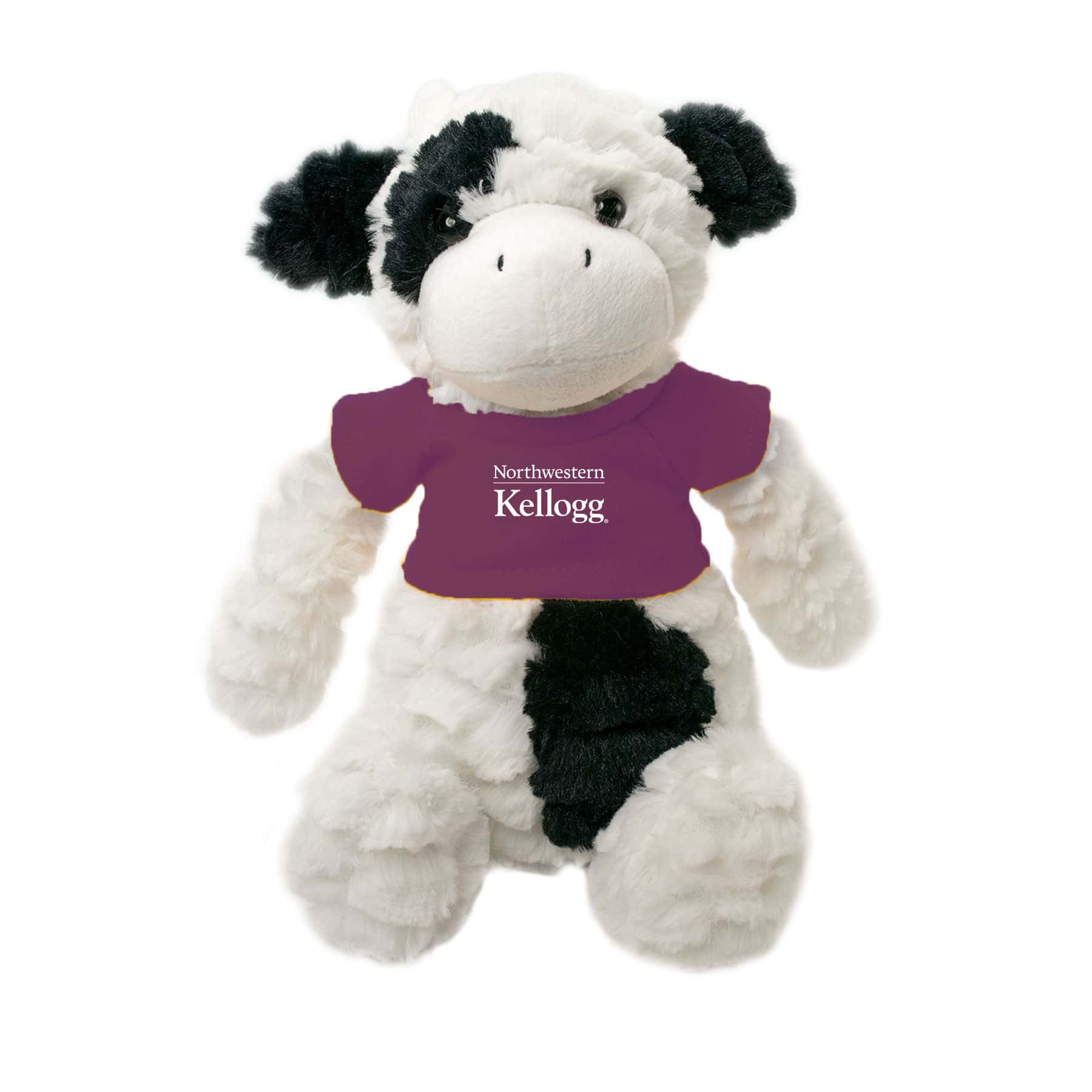 Northwestern I Kellogg Fuzzy Bunch Cow Wearing Purple “Northwestern I Kellogg” Tee Shirt