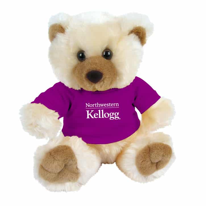 Northwestern I Kellogg Max Teddy Bear Wearing Purple “Northwestern I Kellogg” Tee Shirt