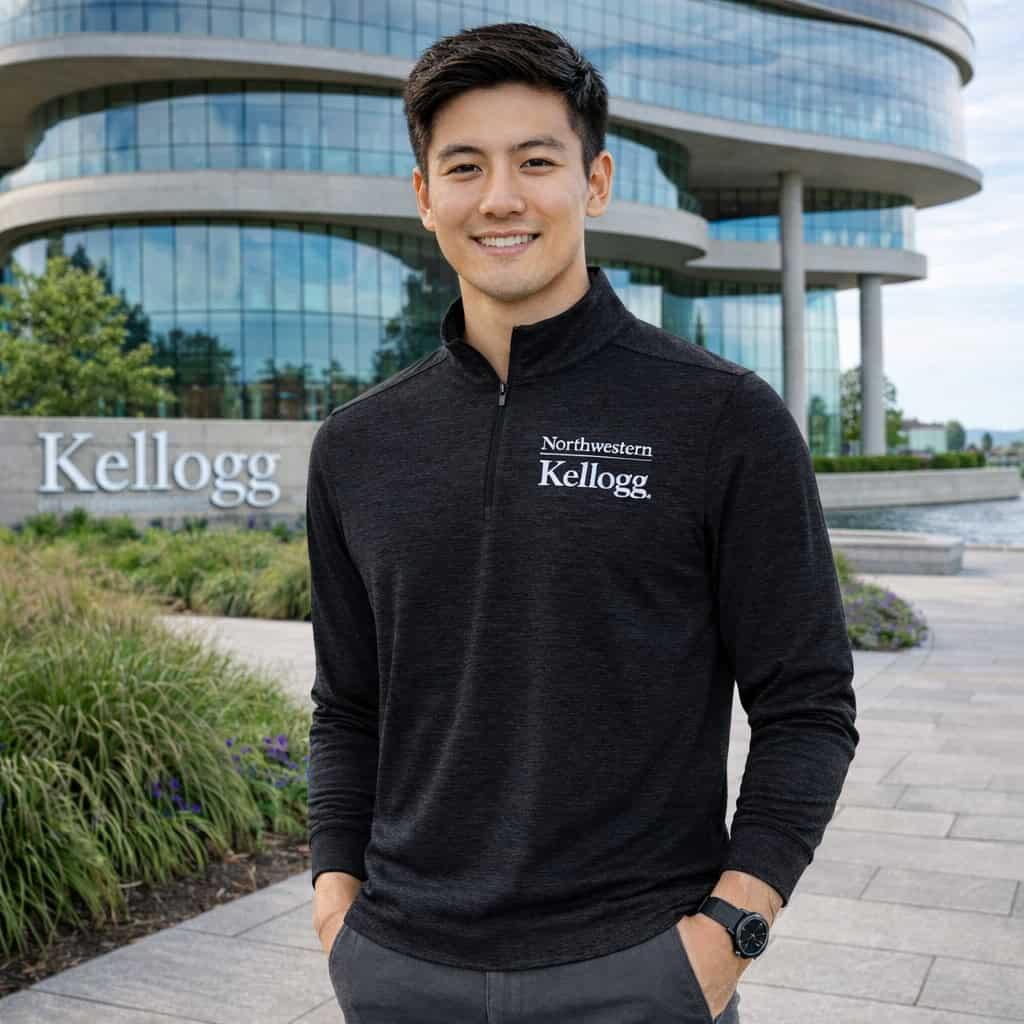 Northwestern I Kellogg Men’s Antigua Black Heather Bright 1/4 Zip Pullover
