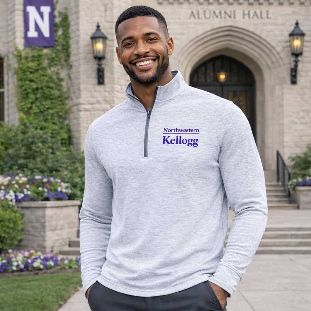 Northwestern I Kellogg Men’s Antigua Grey/White Cause 1/4 Zip Pullover
