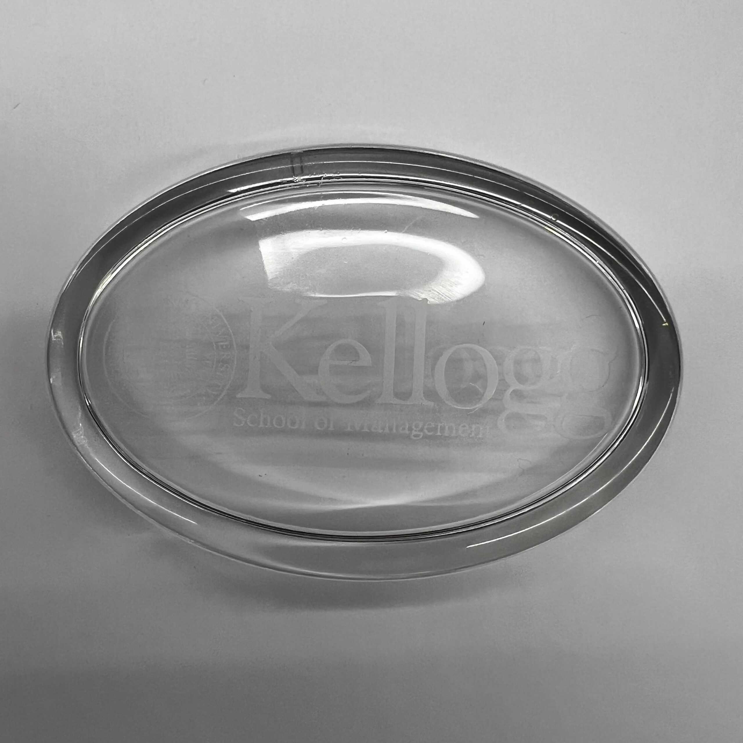 Northwestern I Kellogg Oval Glass Paper Weight