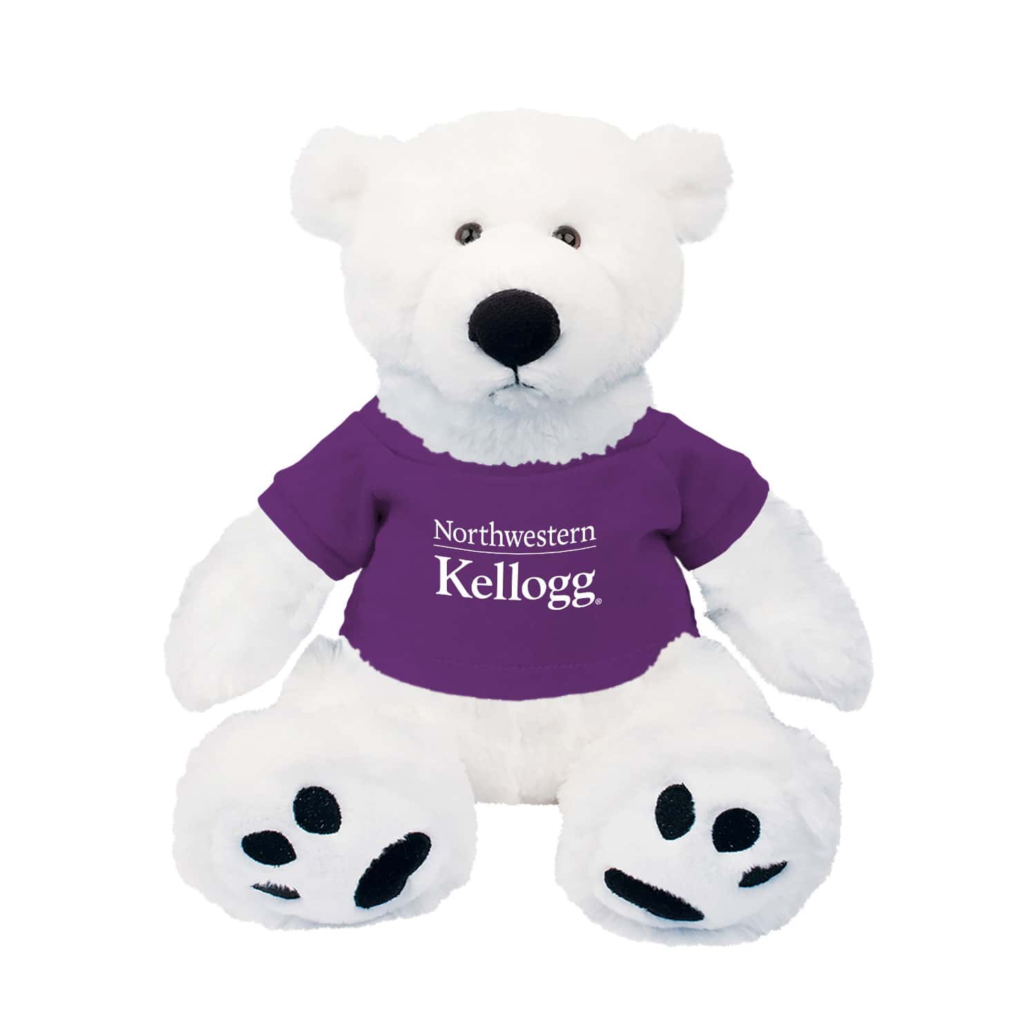 Northwestern I Kellogg Scout White Teddy Bear Wearing Purple “Northwestern I Kellogg” Tee Shirt