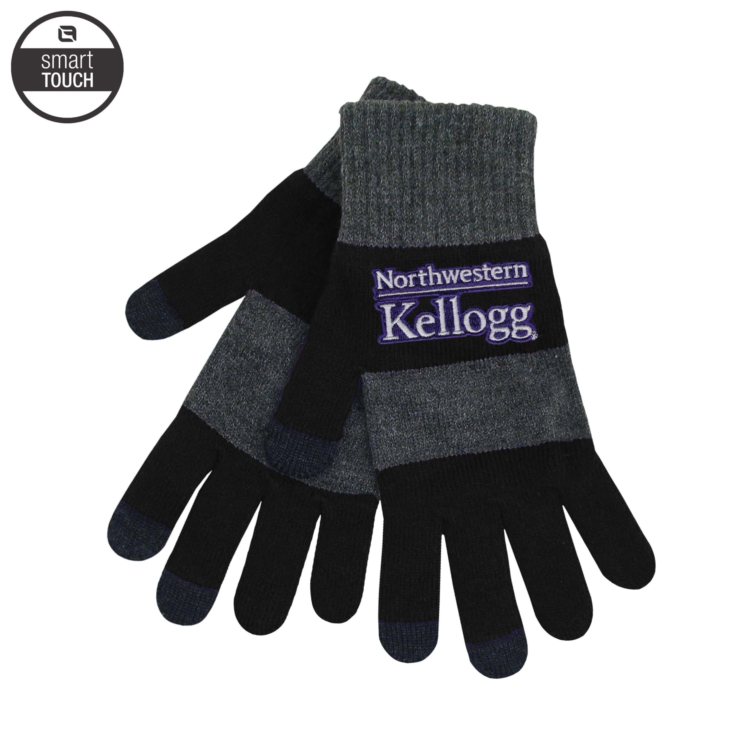Northwestern I Kellogg Trixie iText Black/Charcoal Rugby Striped Smart Touch Knit Texting Gloves