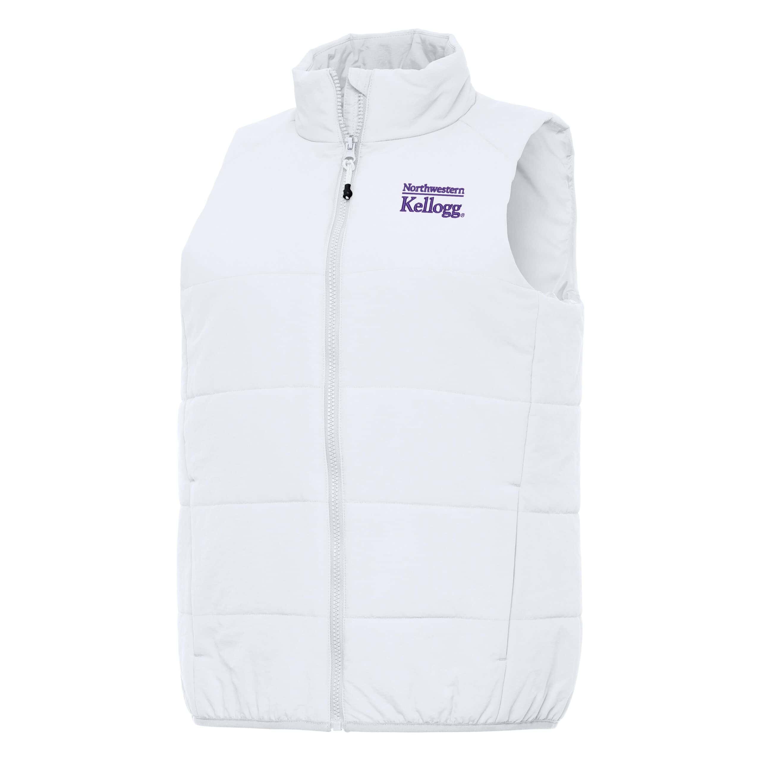 Northwestern I Kellogg Women’s Antigua Experience FZ Vest in White Color