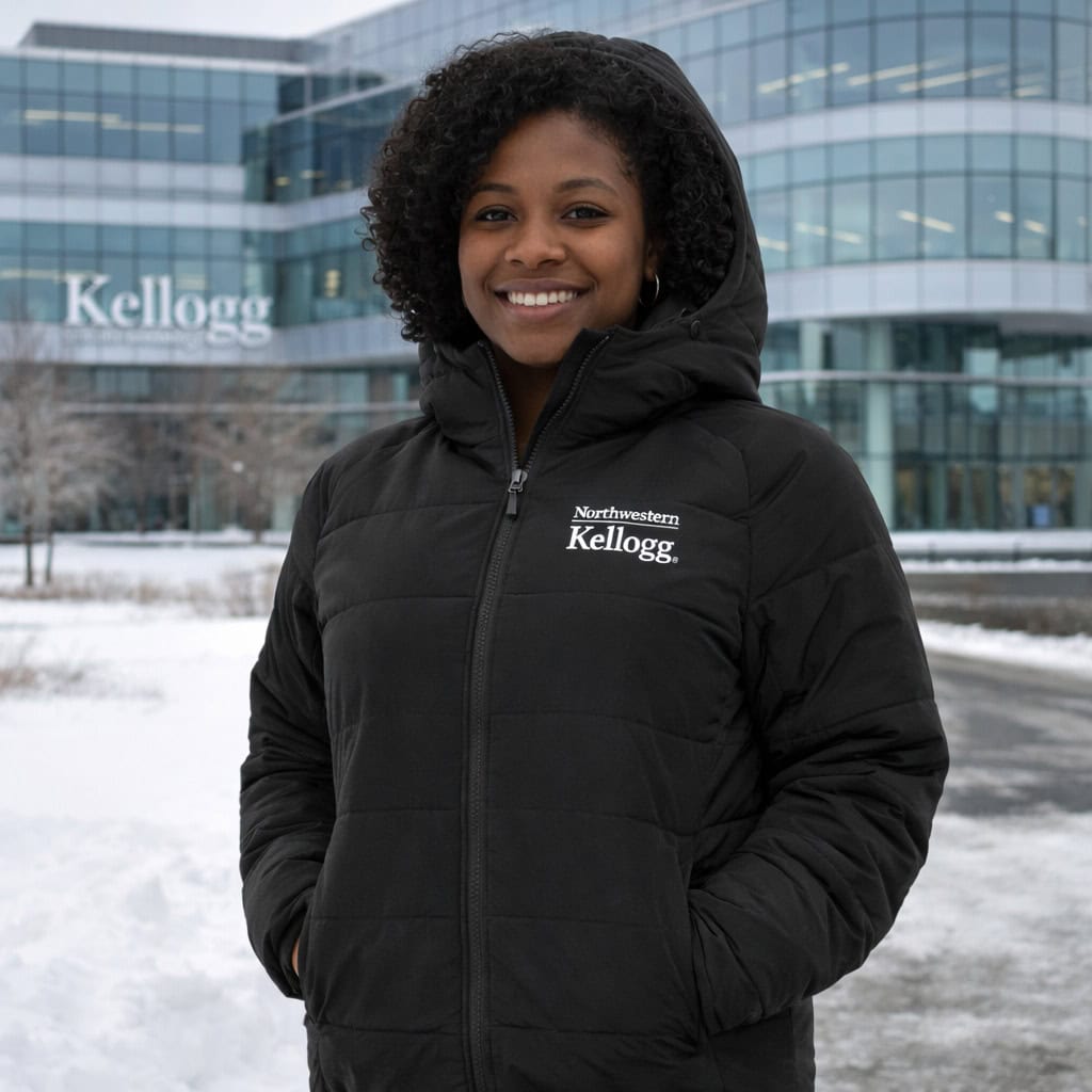 Northwestern I Kellogg Women’s Antigua Universe Puffy Jacket in Black Color