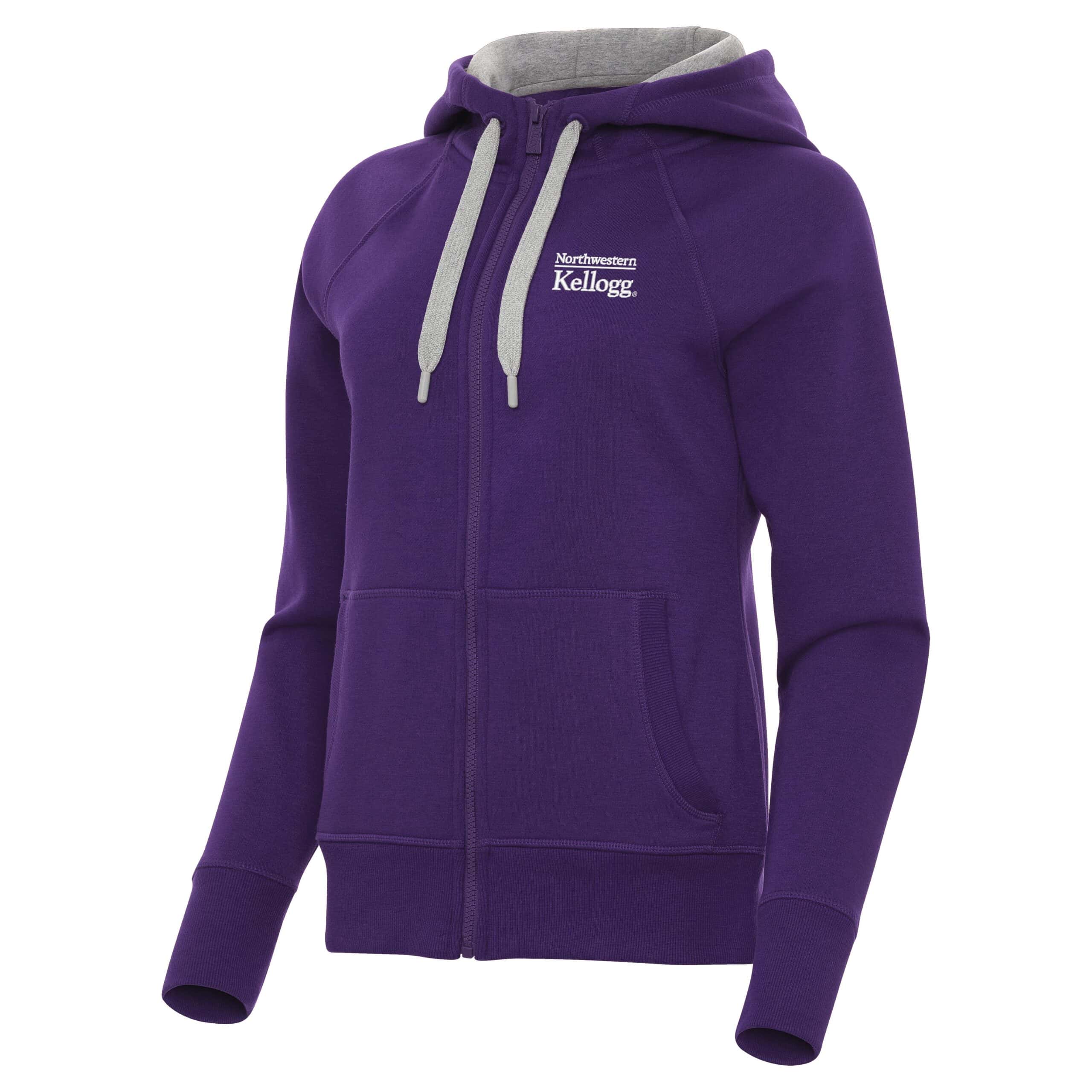Northwestern I Kellogg Women’s Antigua Victory FZ Hooded Sweatshirt in Purple Color