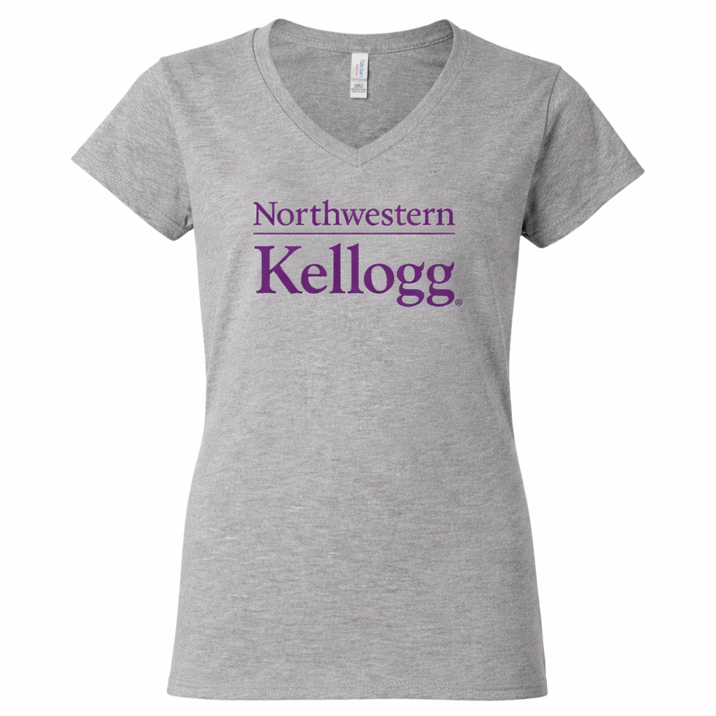 Northwestern I Kellogg Women’s MV Softstyle Sport Grey V-Neck Tee Shirt
