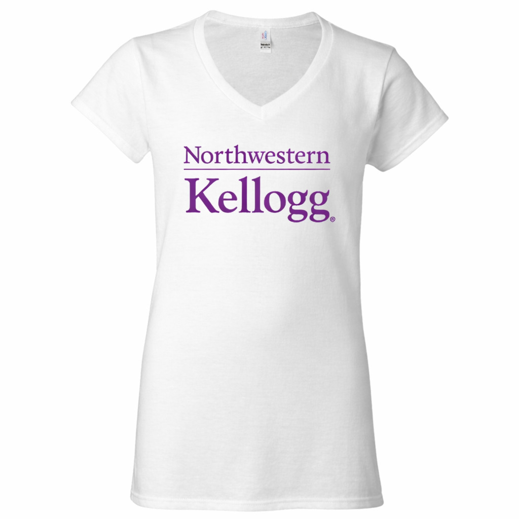 Northwestern I Kellogg Women’s MV Softstyle White V-Neck Tee Shirt
