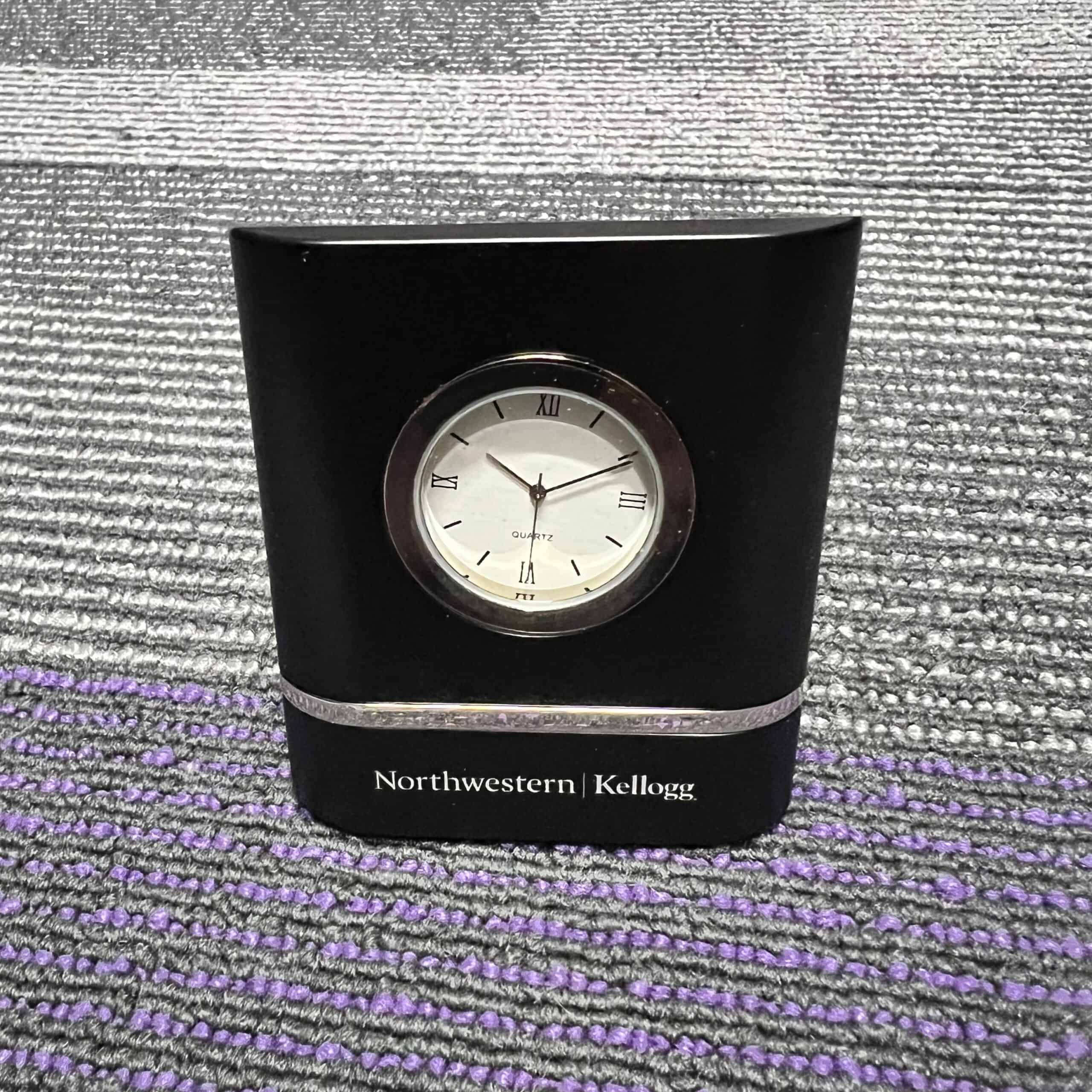 Northwestern | Kellogg Laser Engraved Black Trillium Two-Toned Desk Clock