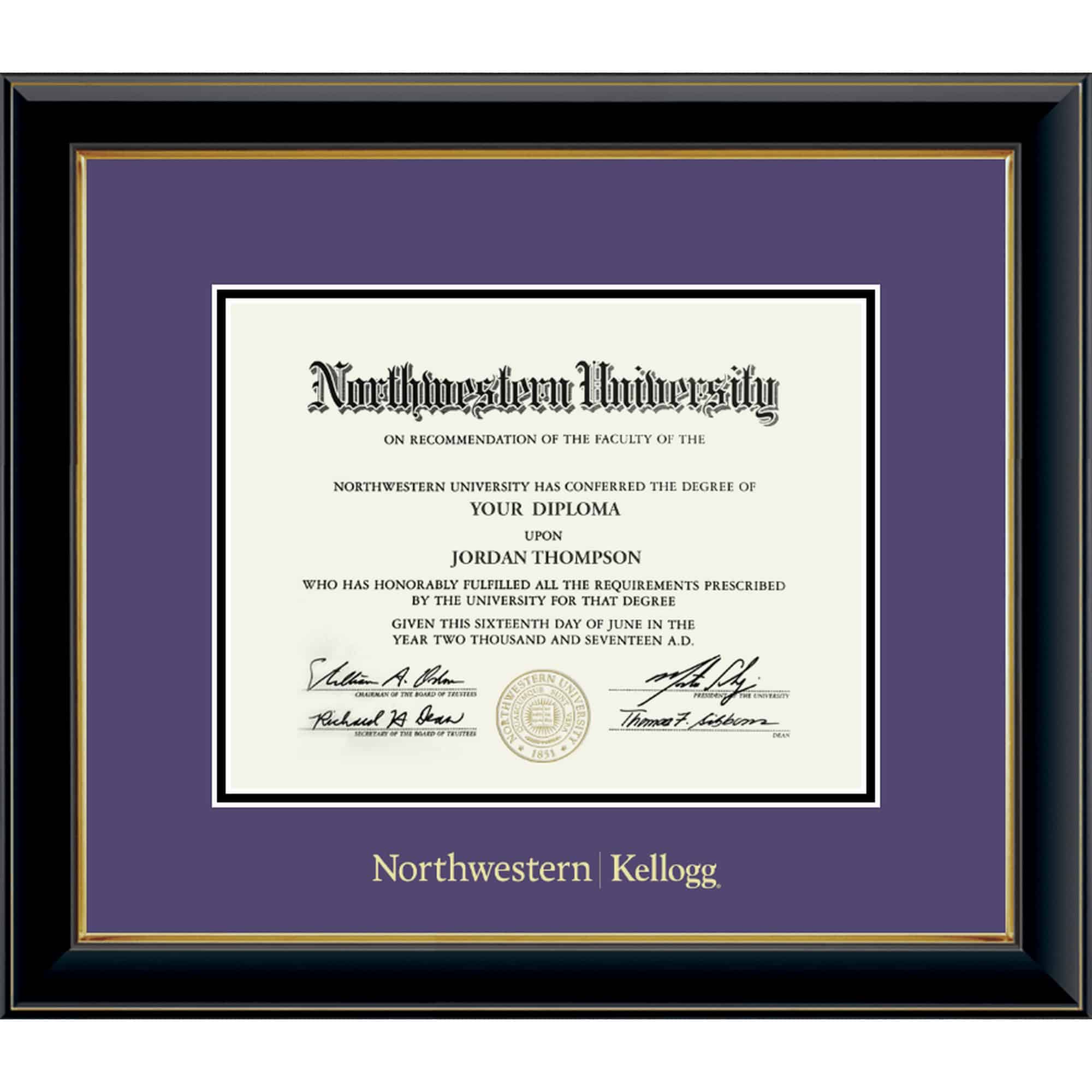 Northwestern | Kellogg Onyx Double Matted Black Diploma Frame with Gold Accent & Main Matt In Purple