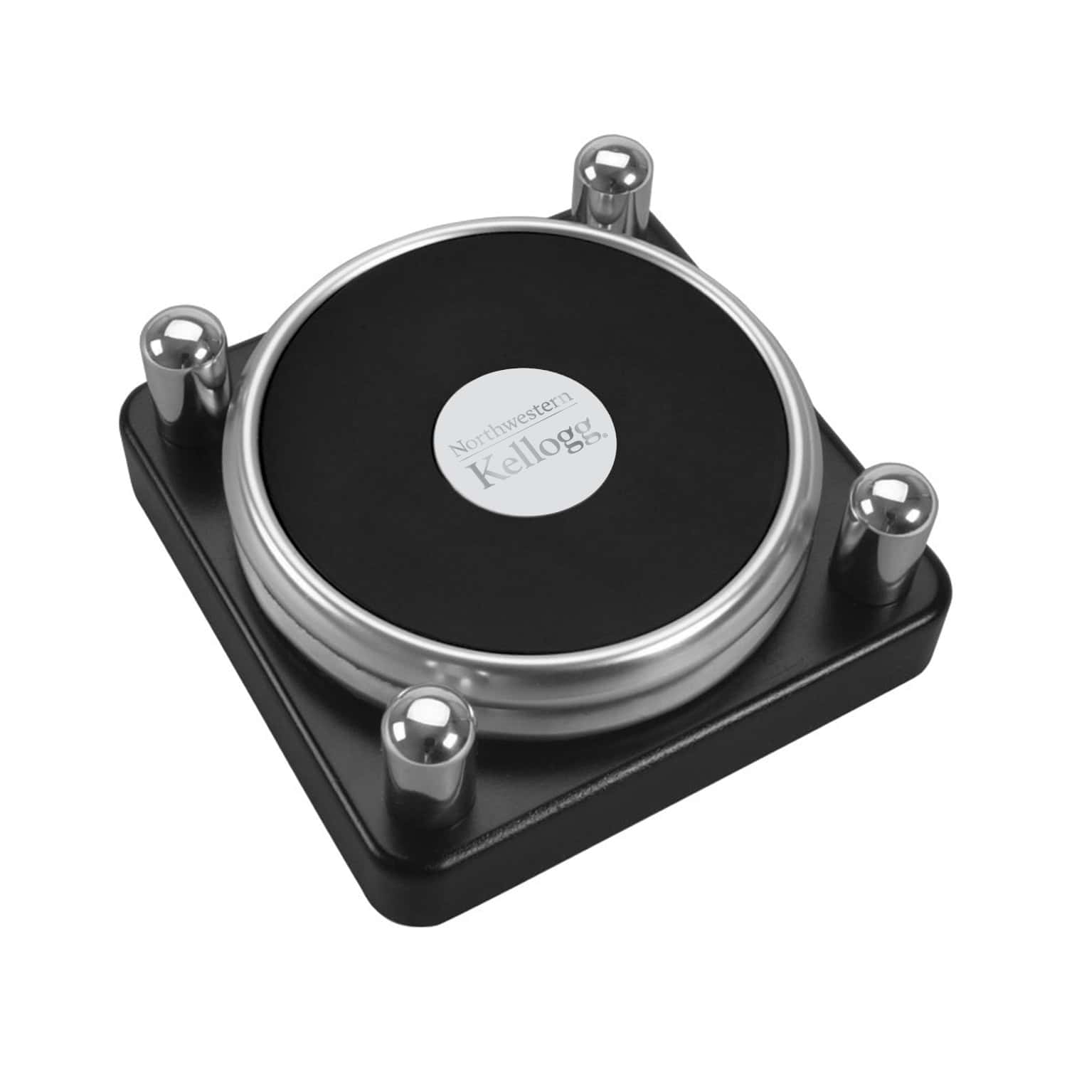 Northwestern | Kellogg Stacked Design Silver Medallion Silver Tone & Leather Coaster Set of Two