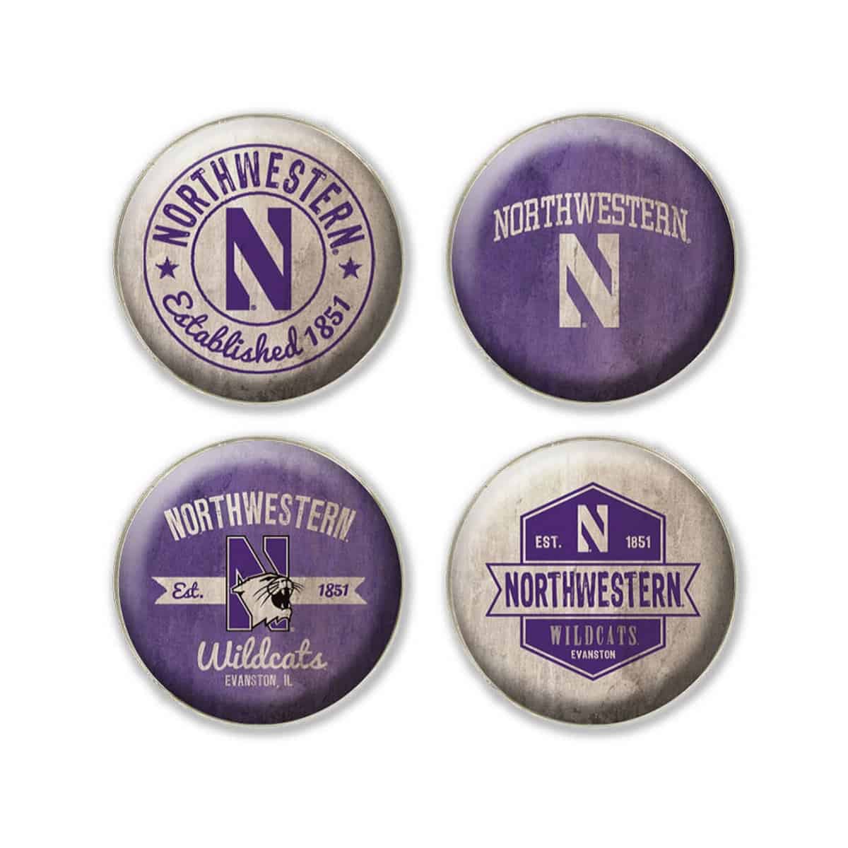 Northwestern University Wildcats 1.35″ Dome Fridge Magnet set of Four Combo Pack #9