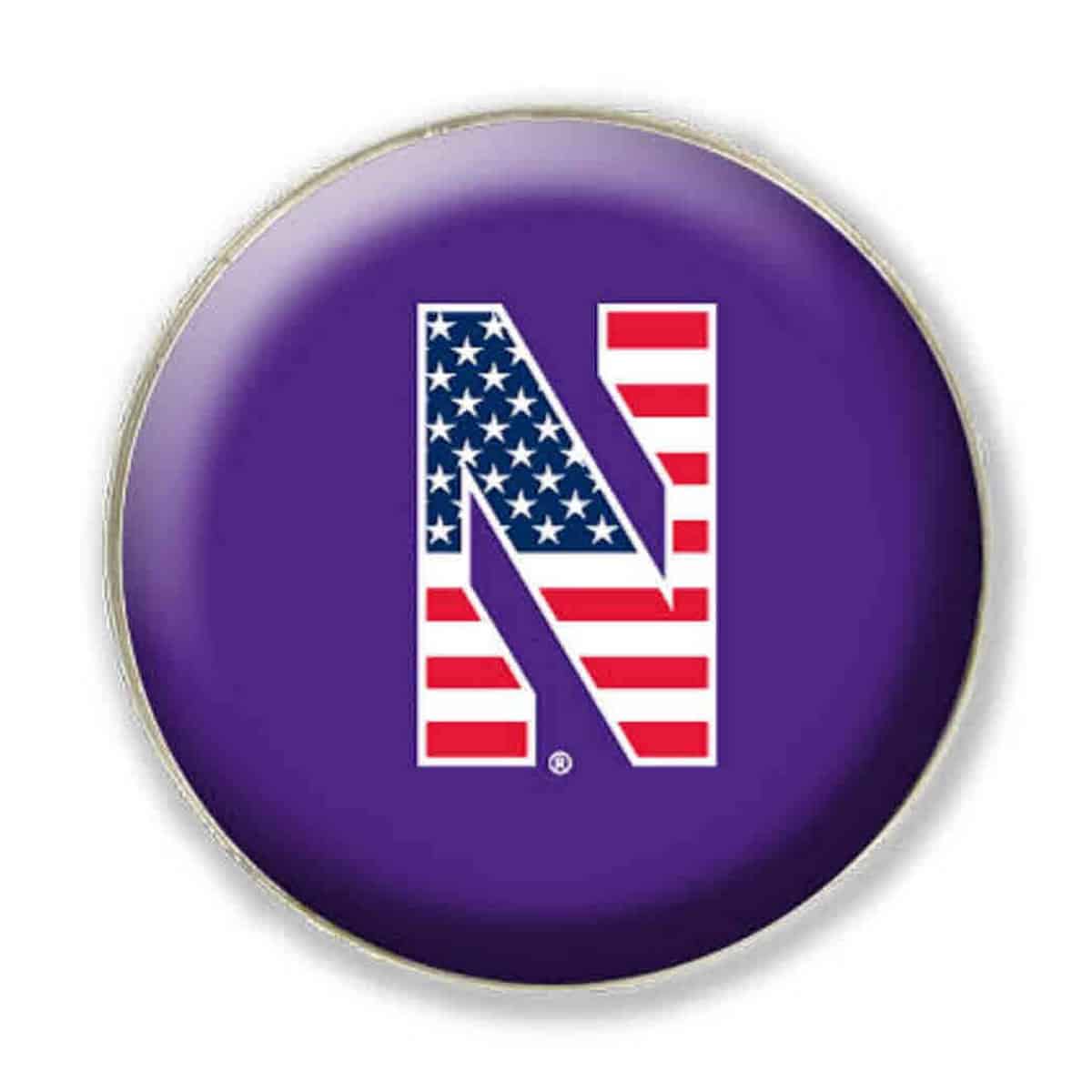 Northwestern University Wildcats 1.35" Purple Dome Fridge Magnet with Stylized N & US Flag Design