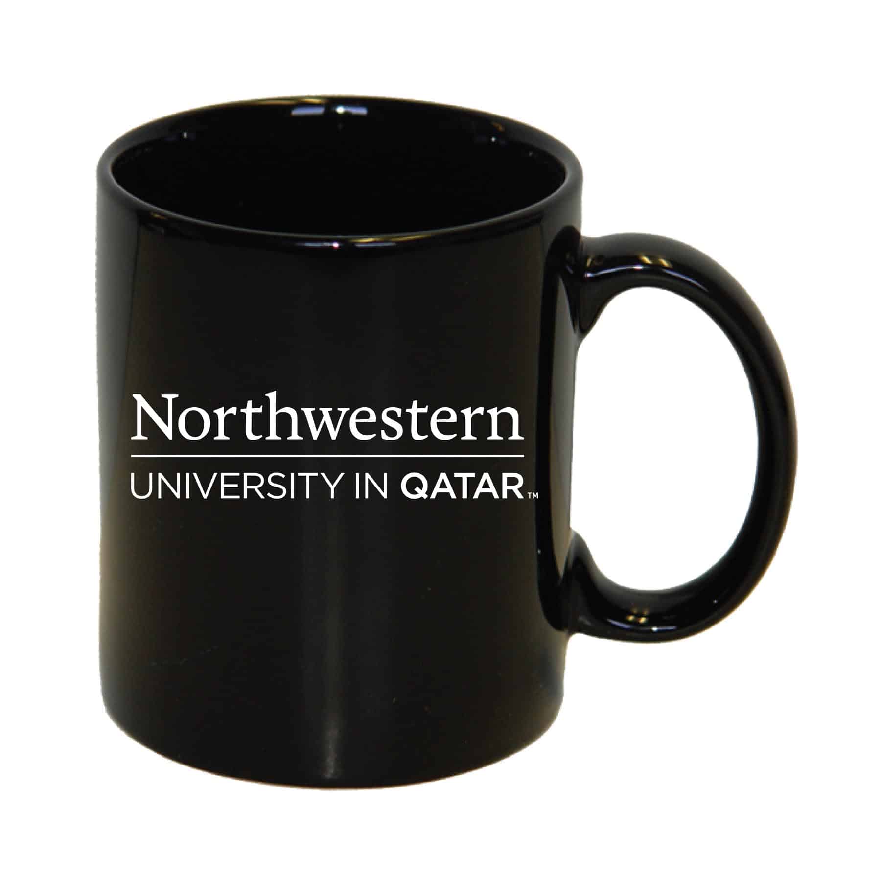 Northwestern University Wildcats 11 oz. Black Ceramic Coffee Mug with Northwestern University in Qatar Design