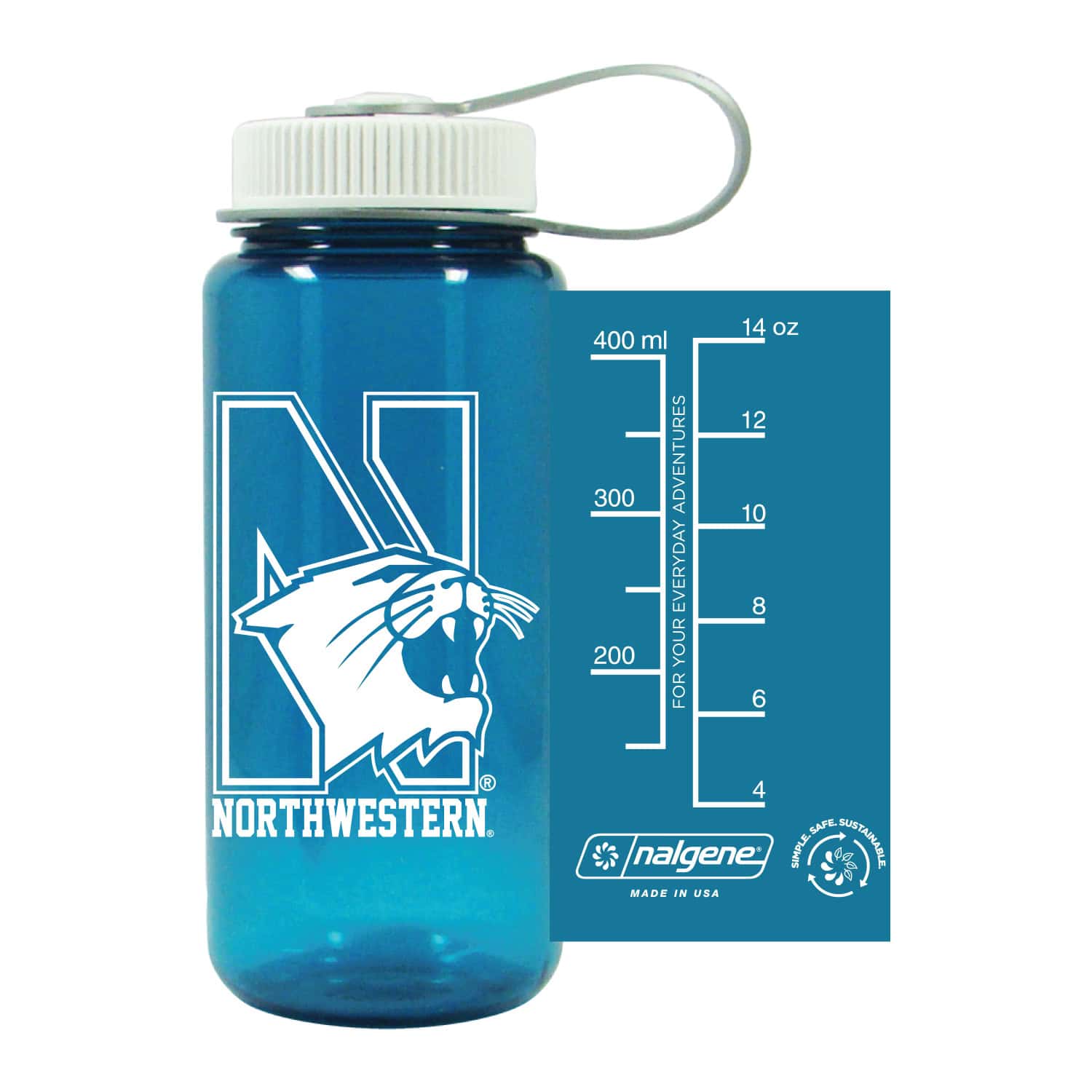 Northwestern University Wildcats 16 oz. Trout Green Tritan Wide Mouth Nalgene Bottle with N-Cat Design