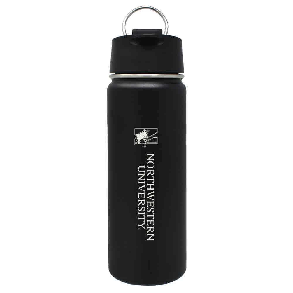 Northwestern University Wildcats 20 oz Laser Engraved Black Impact Travel Tumbler Water Bottle/Mug