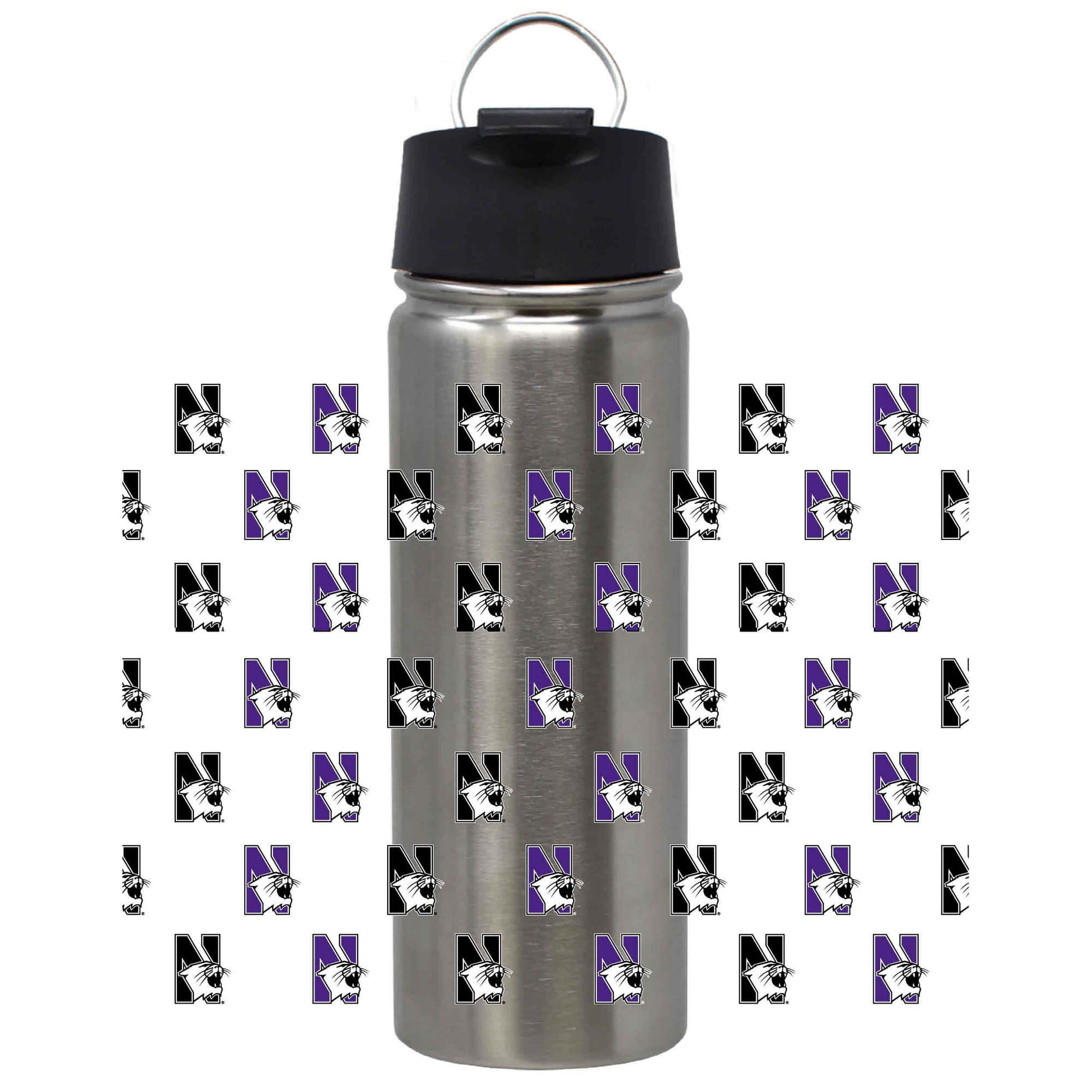 Northwestern University Wildcats 20 oz Silver Impact Travel Tumbler Water Bottle/Mug with Full Color Repeated N-Cat Design