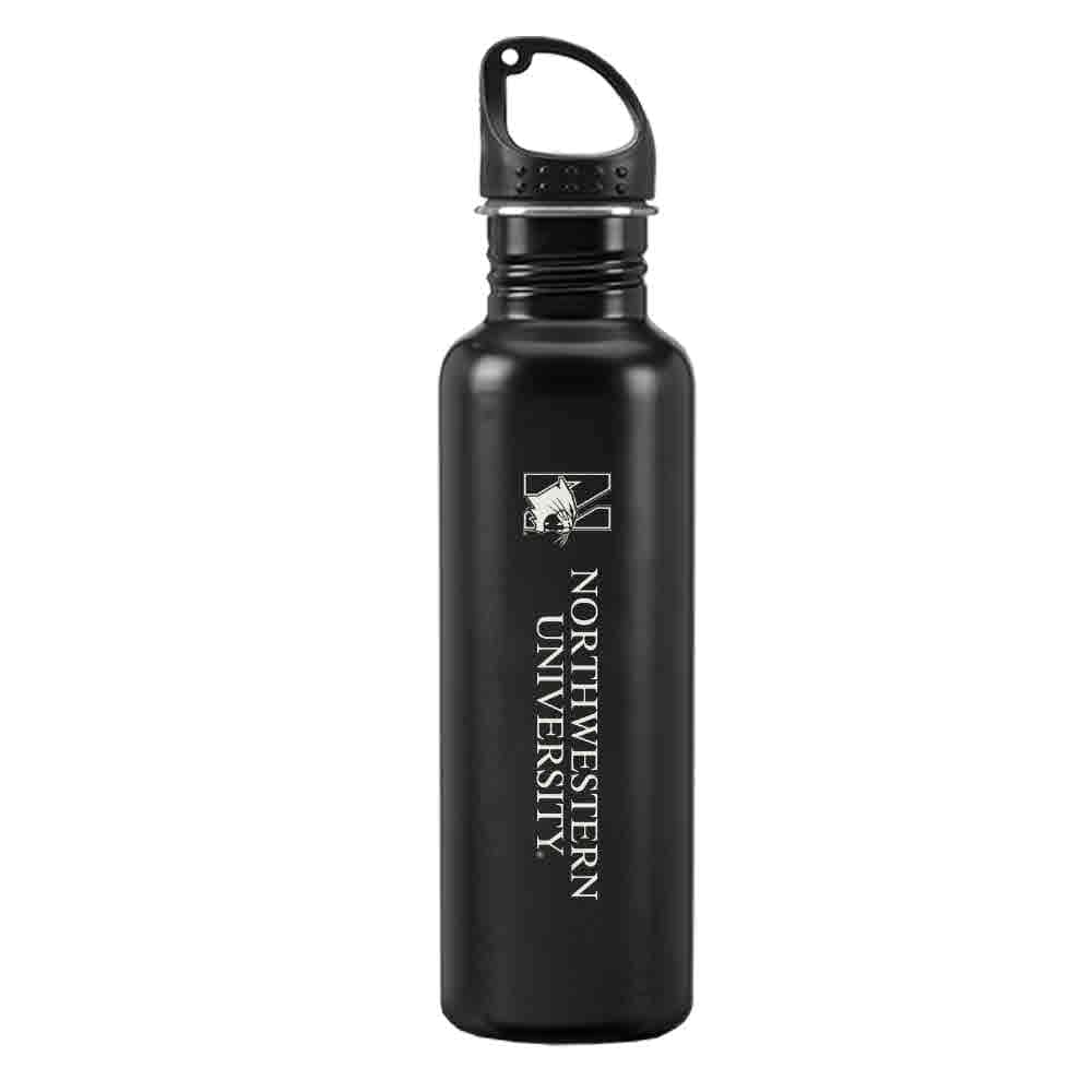 Northwestern University Wildcats 24 oz. Laser Engraved Black Stainless Steel Water Bottle With N-Cat Design