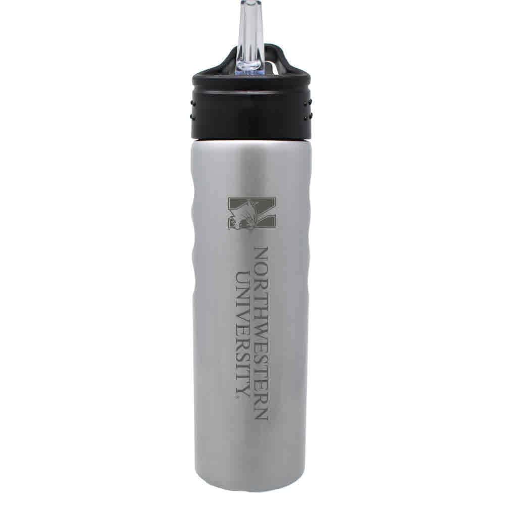 Northwestern University Wildcats 24 oz. Laser Engraved Silver Grip Water Bottle With N-Cat Design