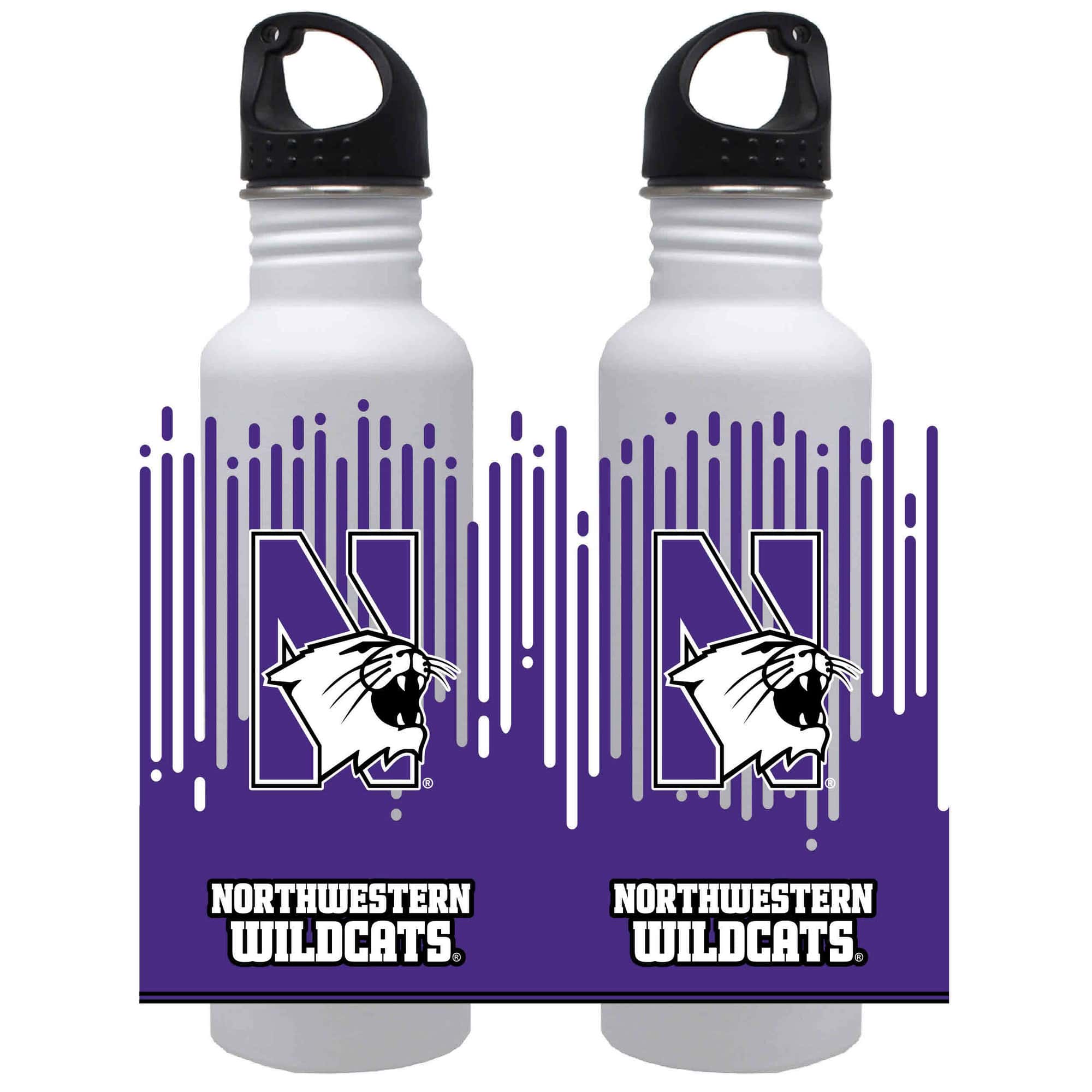 Northwestern University Wildcats 24 oz. White Stainless Steel Water Bottle With Full Color N-Cat Design