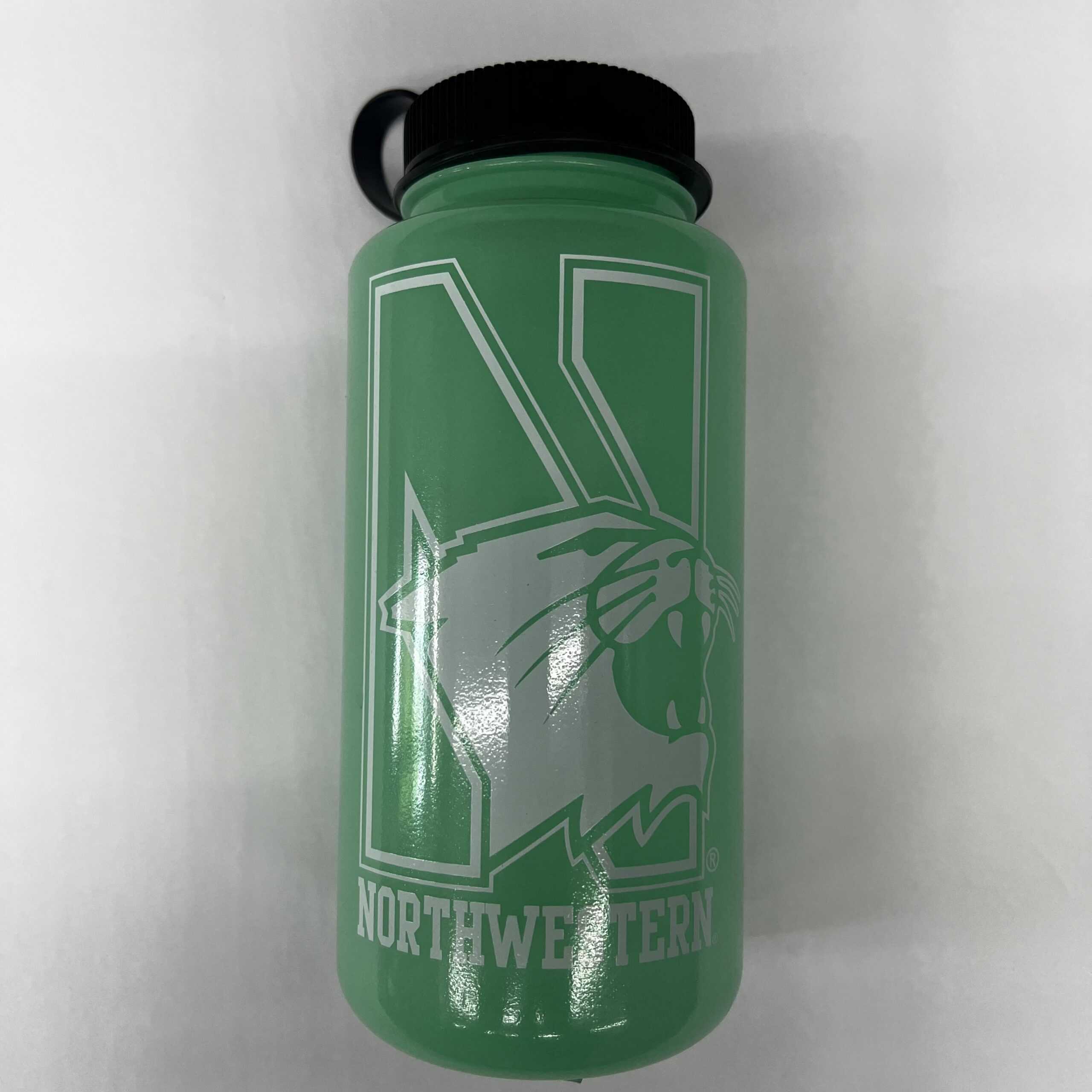 Northwestern University Wildcats 32 oz. Glow Green Tritan Wide Mouth Nalgene Water Bottle with N-Cat Design