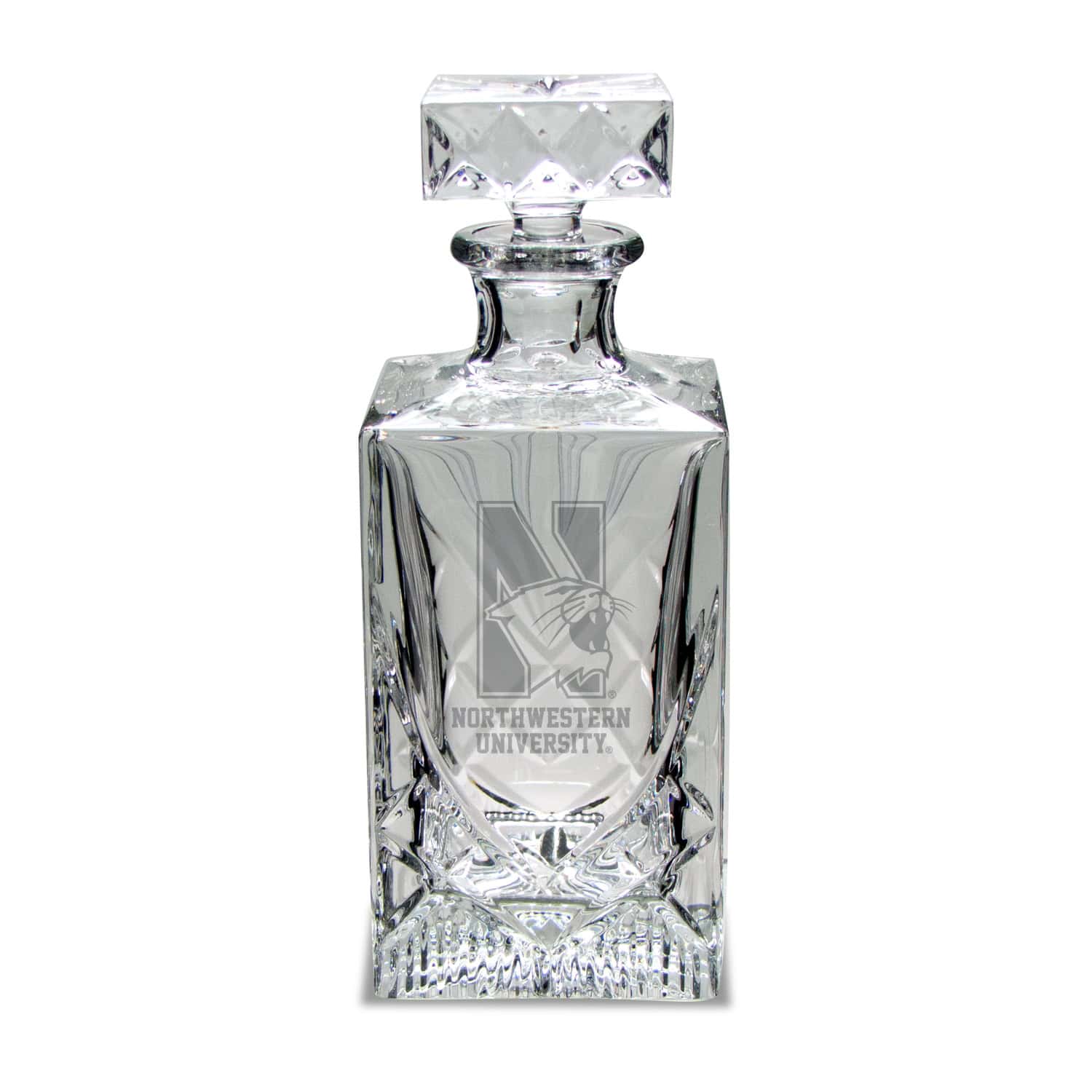 Northwestern University Wildcats 38 oz Hand Cut Square Crystal Decanter with Deep Etched N-Cat Design