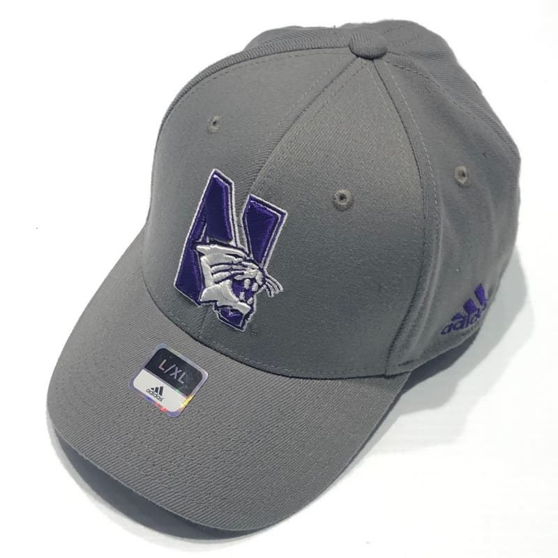 Northwestern University Wildcats Adidas Dark Grey Constructed Flexfit Hat with N-Cat Design quantity