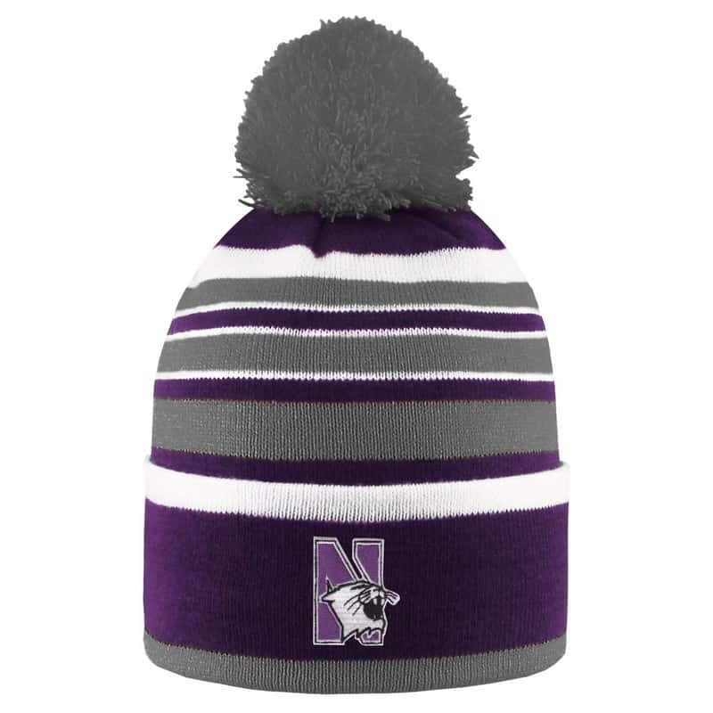 Northwestern University Wildcats Adult Bradshaw Stripped Knit Cuff Hat With Pom