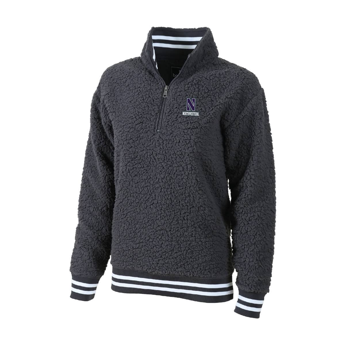 Northwestern University Wildcats Adult Charcoal with Purple Trim Varsity Sherpa Quarter Zip Pullover Jacket by Boxercraft