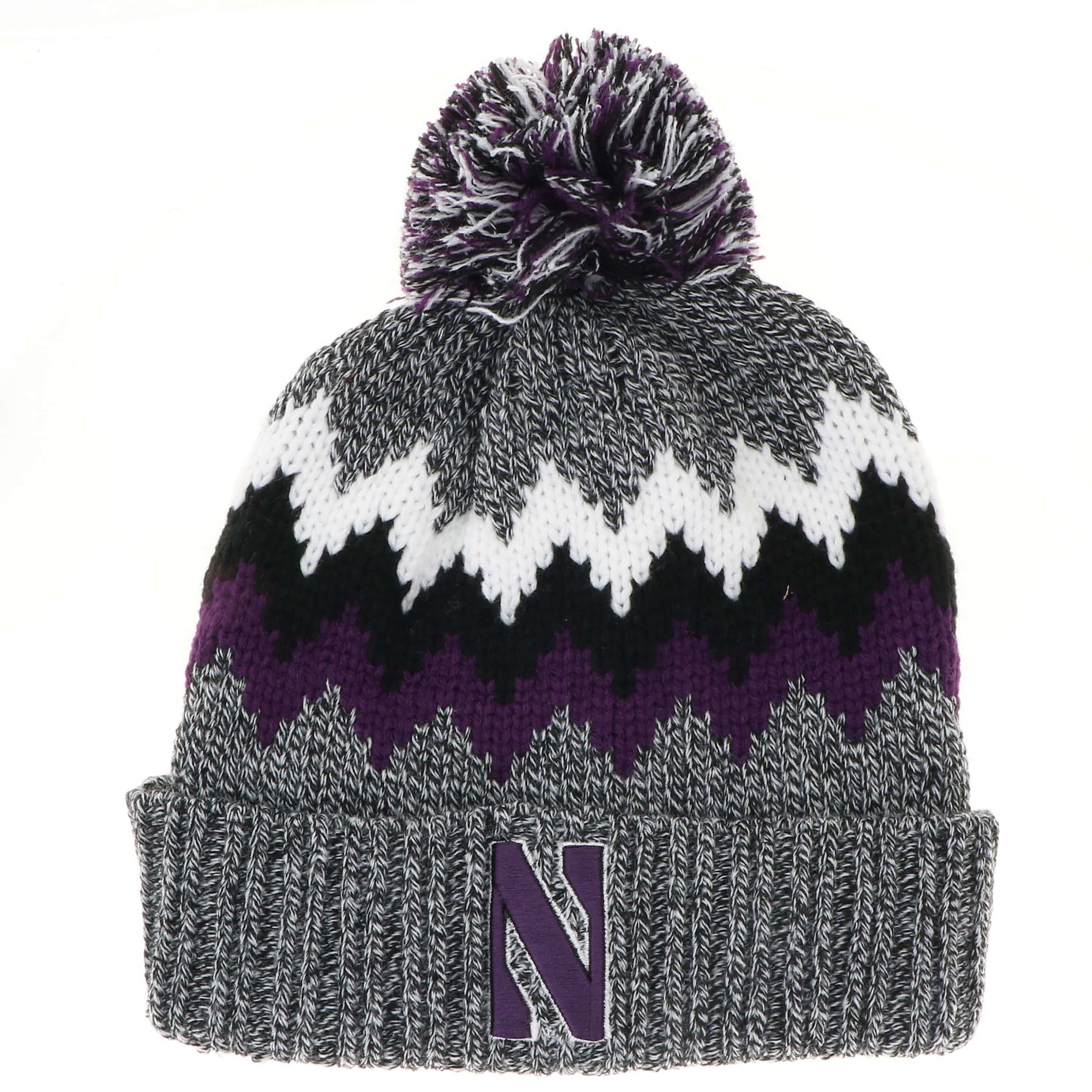 Northwestern University Wildcats Adult Grey Marled Zig Zag Cuffed Northwestern Knit Cap with Pom