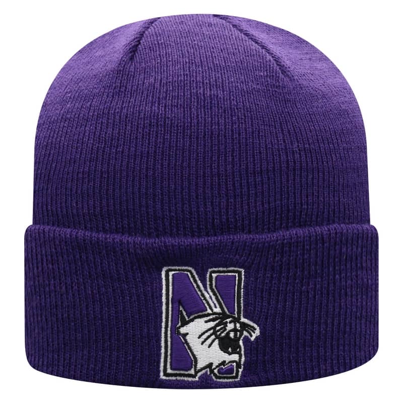 Northwestern University Wildcats Adult Purple Cuffed Knit Hat With Embroidered N-Cat Design