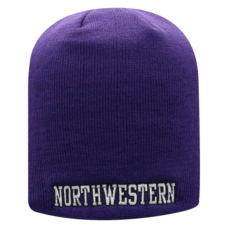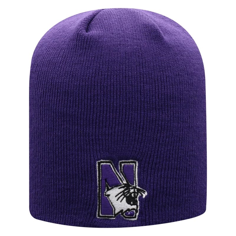 Northwestern University Wildcats Adult Purple Uncuffed Knit Hat With Embroidered Northwestern Design On Front and N-Cat On the Back