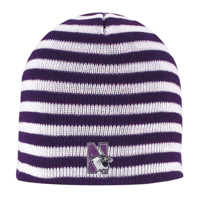Northwestern University Wildcats Adult Purple/White Blizzard Micro Stripped Knit Beanie