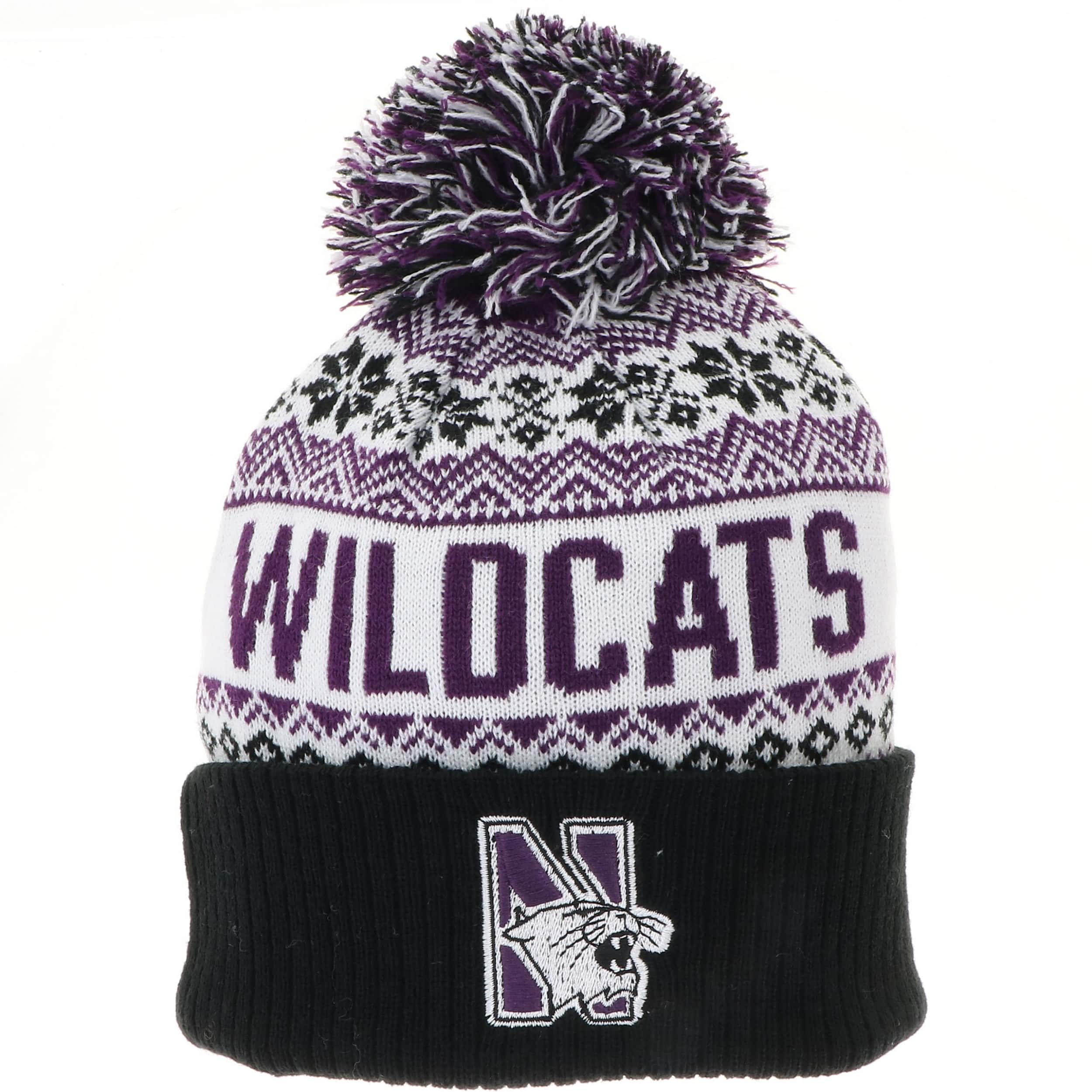 Northwestern University Wildcats Adult Snowflake Knit Cuff Hat with Pom