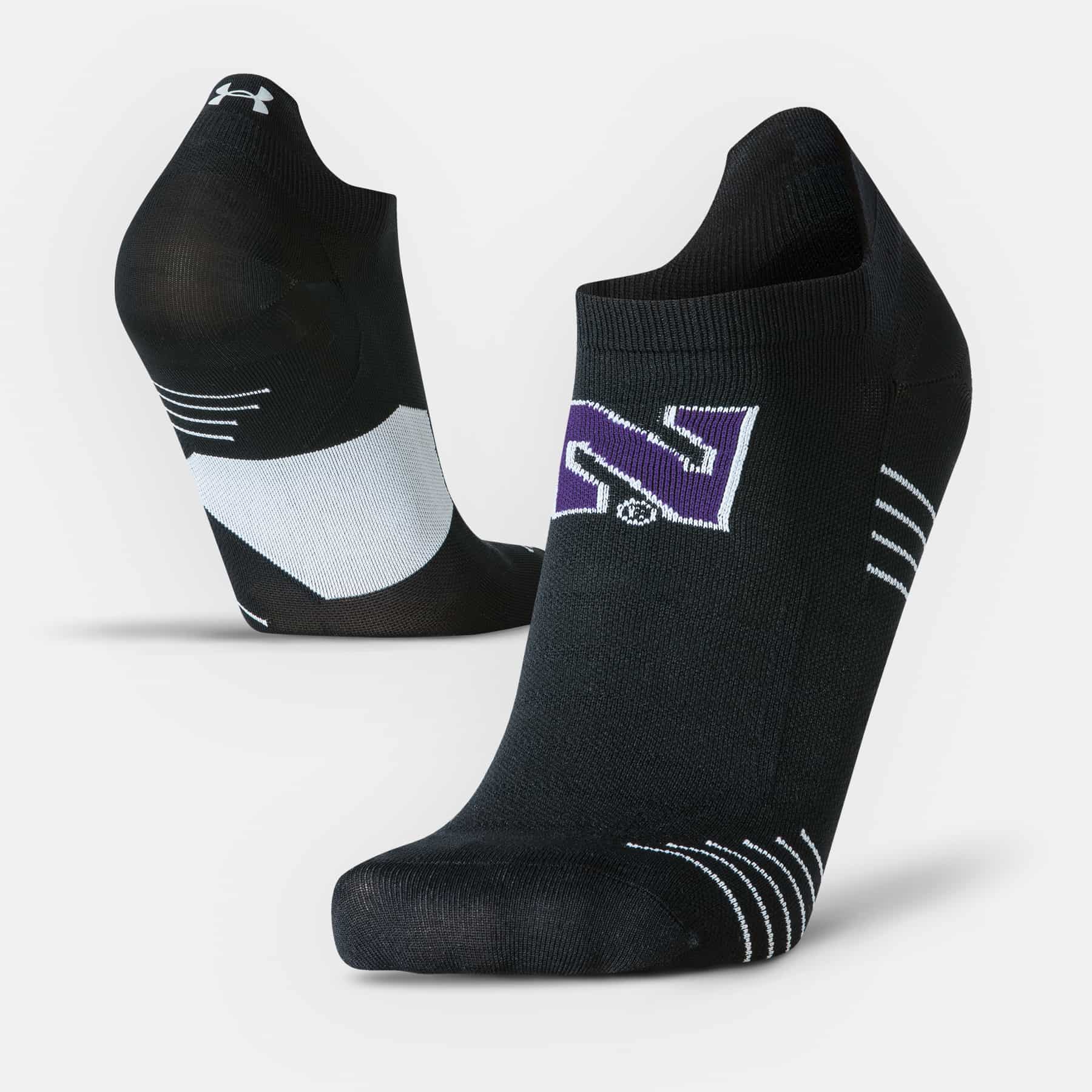 Northwestern University Wildcats Adult Under Armour Black Run No Show Sock