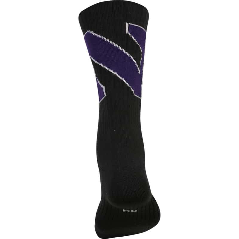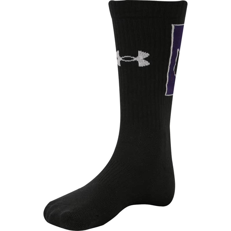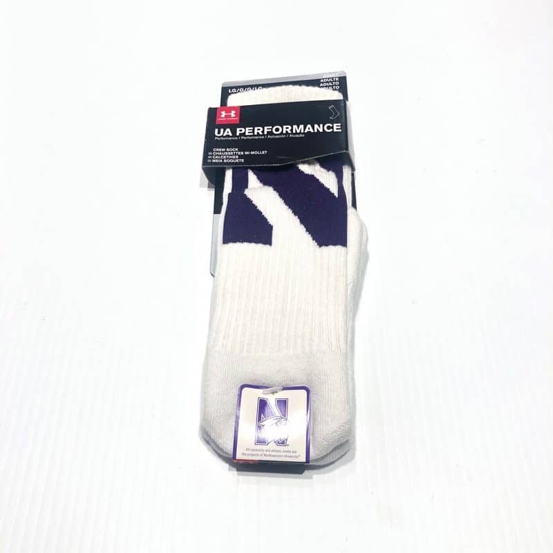 Northwestern University Wildcats Adult Under Armour White Crew Sock With Oversized Stylized N Design quantity