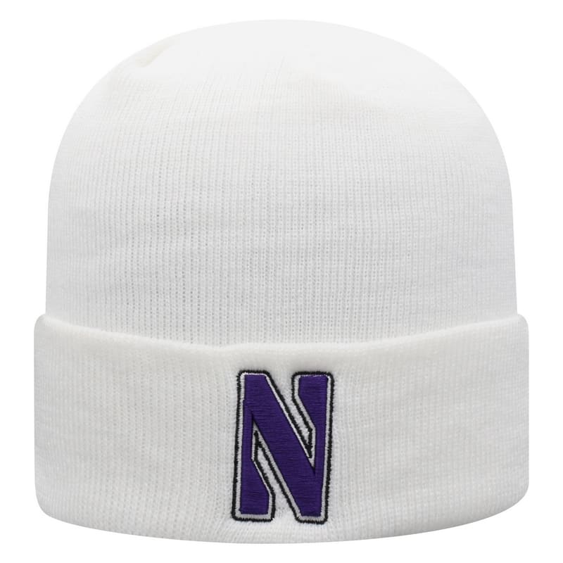 Northwestern University Wildcats Adult White Cuffed Knit Hat With Embroidered Stylized N Design